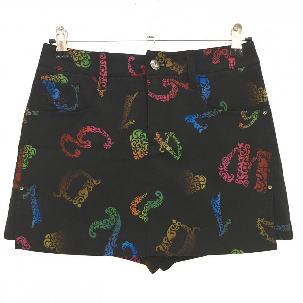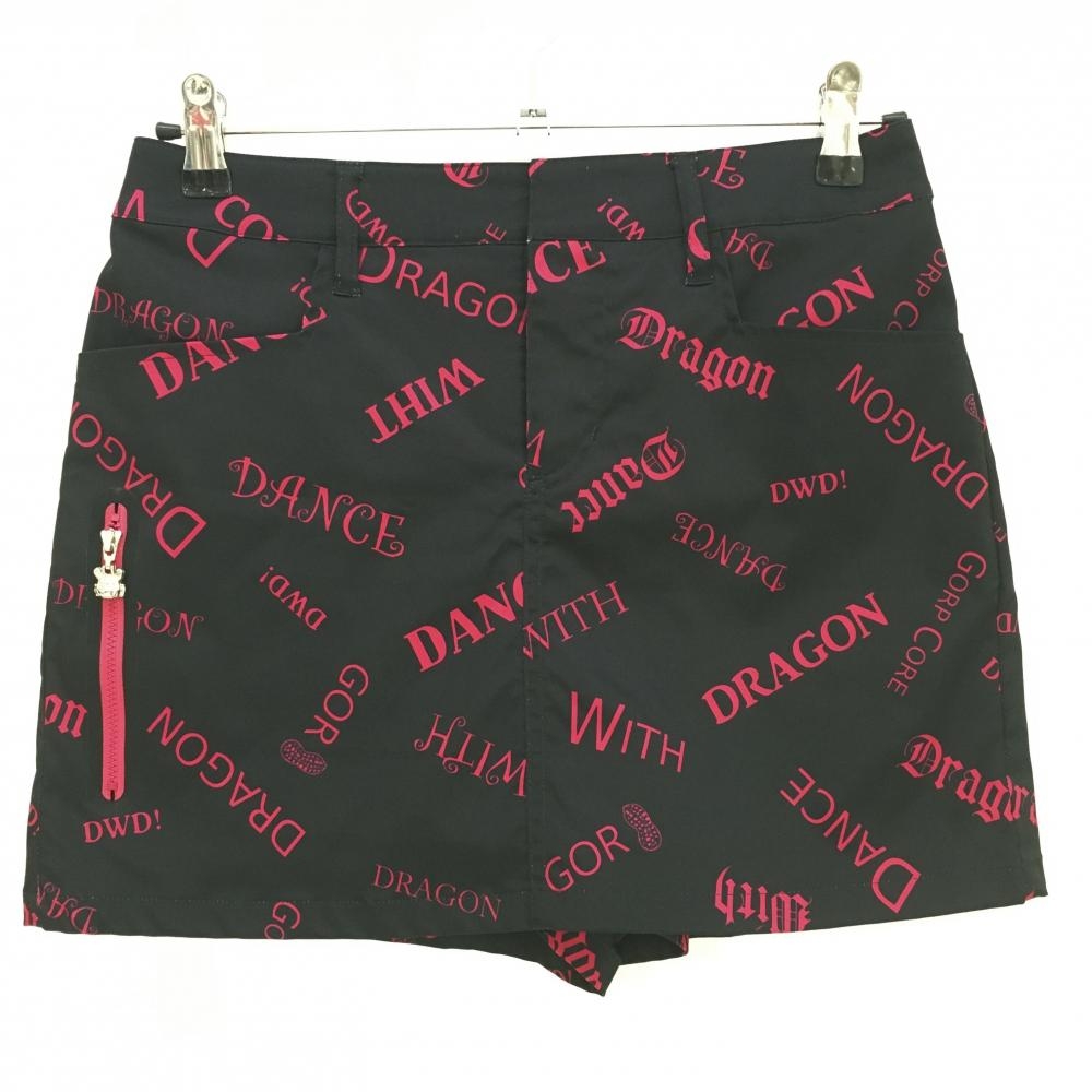 【超美品】ダンスウィズドラゴン キュロットスカート 黒 一部ロゴプリント レディース 2(M) ゴルフウェア Dance With Dragon