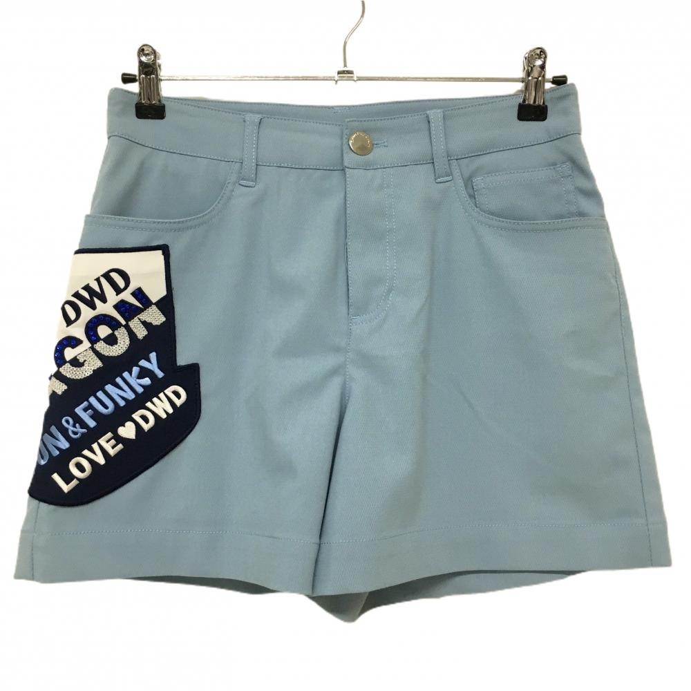【超美品】ダンスウィズドラゴン キュロットスカート ライトブルー ロゴ黒 レディース 2(M) ゴルフウェア Dance With Dragon