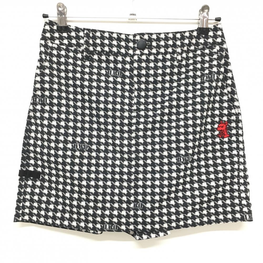 【美品】ダンスウィズドラゴン キュロットスカート 黒×白 ロゴ総柄 レディース 1(S) ゴルフウェア Dance With Dragon