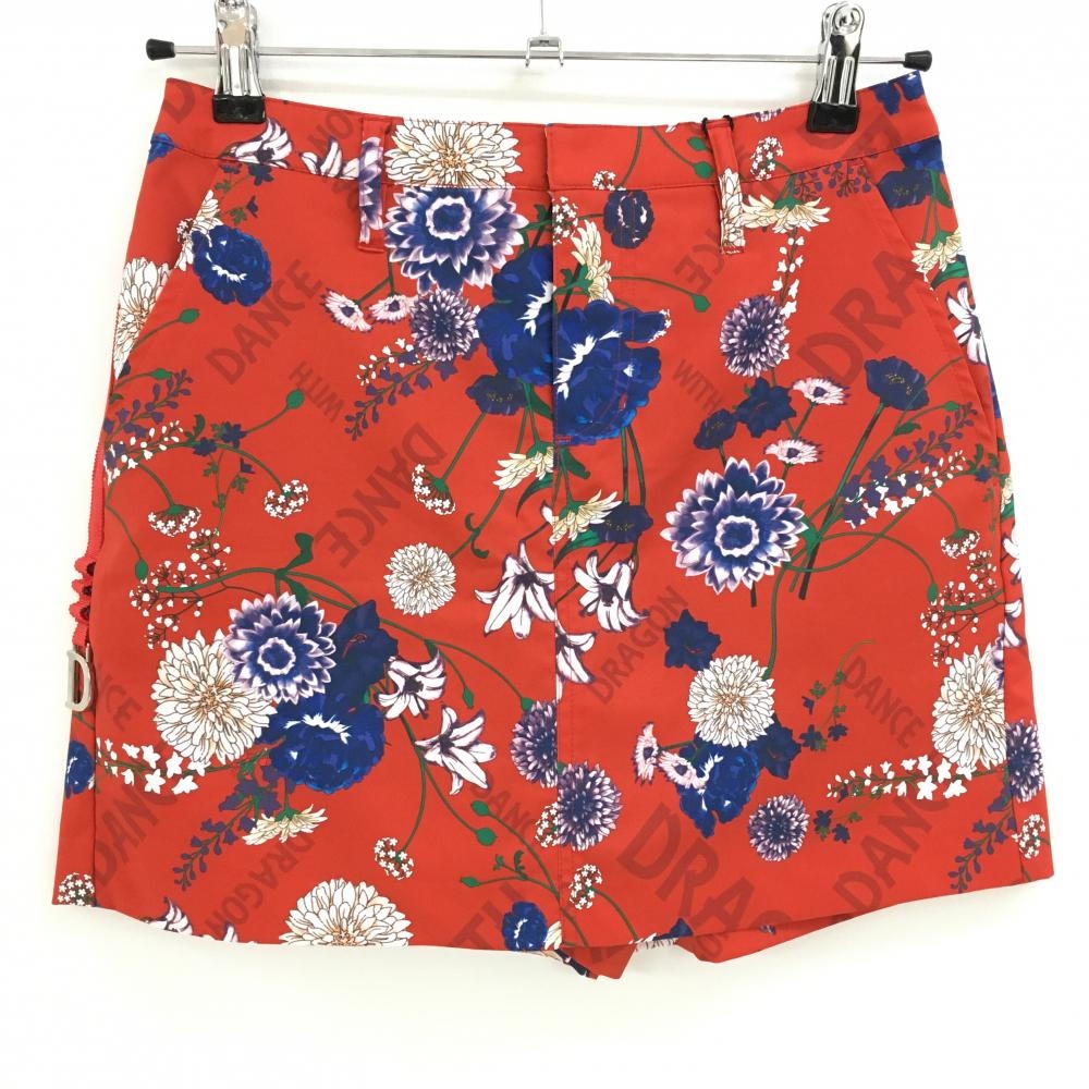 ダンスウィズドラゴン キュロットスカート 黒×レッド 総柄 レディース 2(M) ゴルフウェア Dance With Dragon