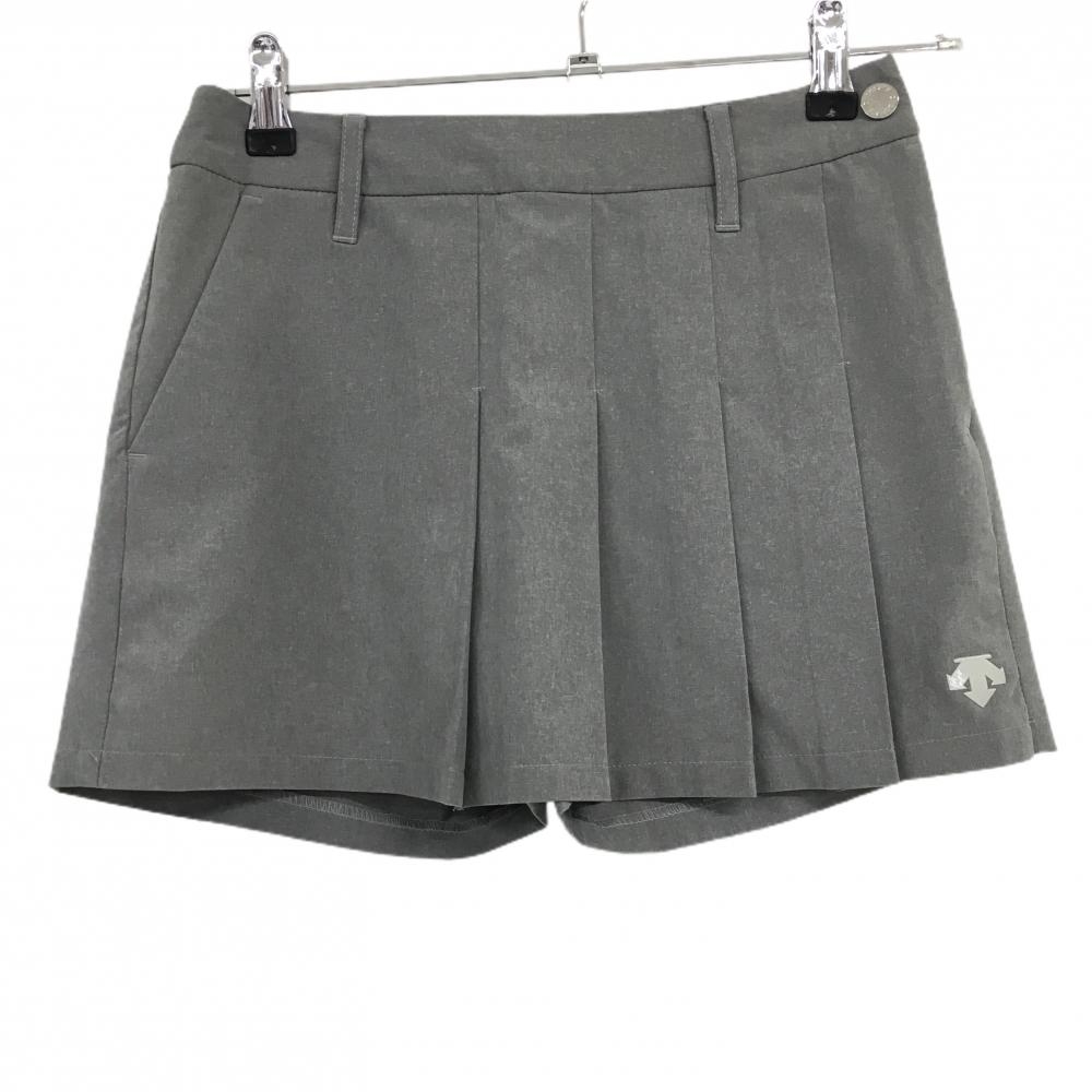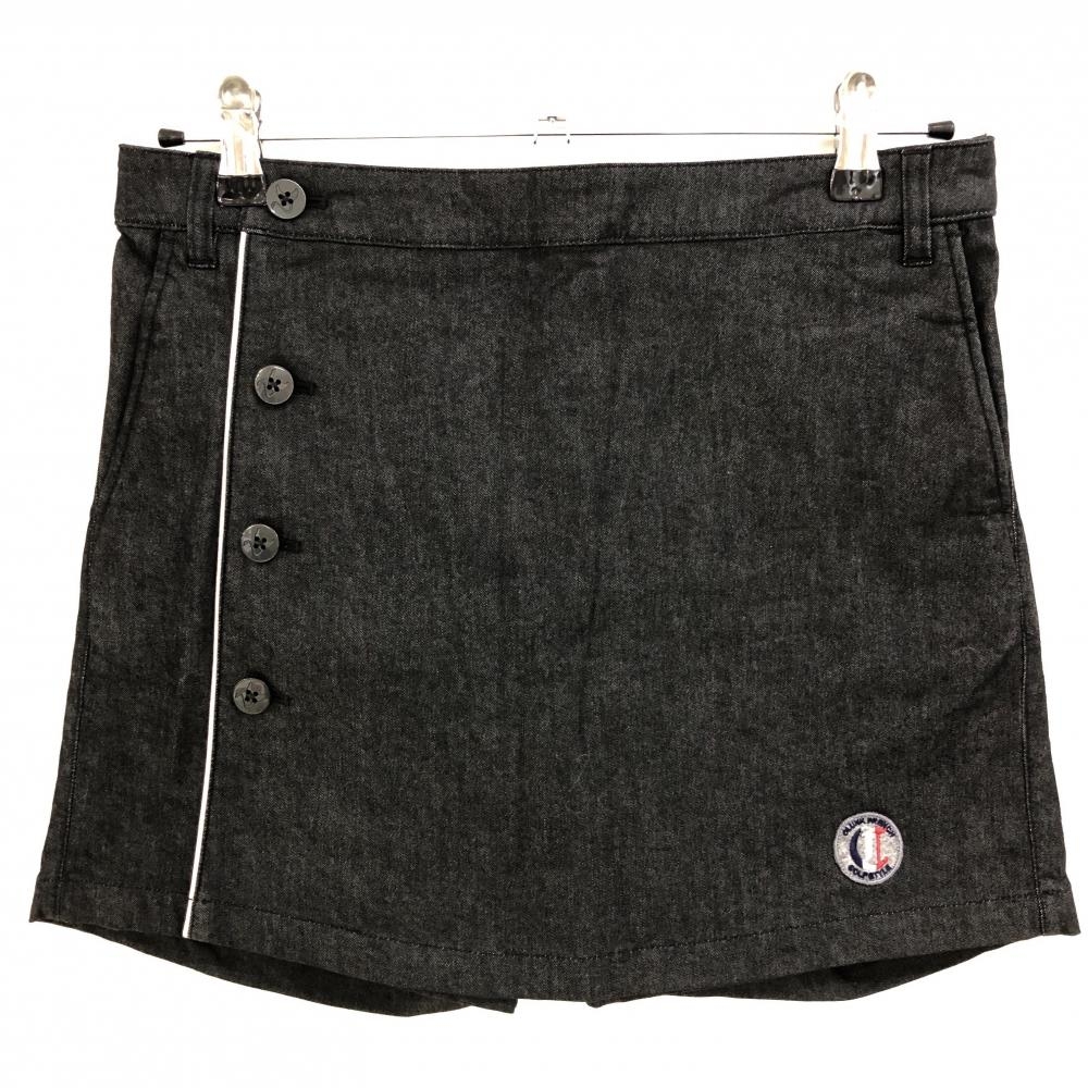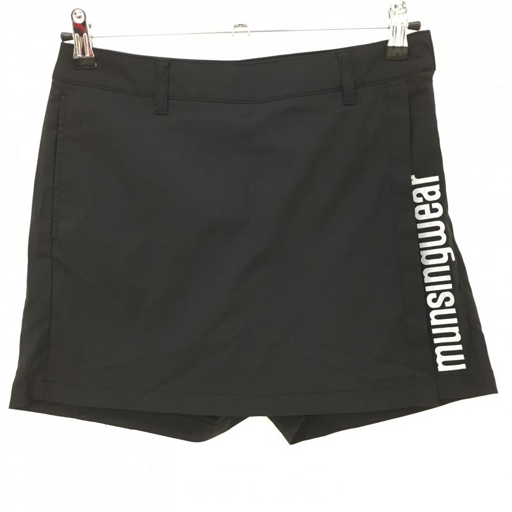 マンシングウェア キュロットスカート 黒×ライトグレー サイドロゴ ストレッチ 裾汚れ小、ヒップ毛羽立ち レディース ゴルフウェア Munsingwear