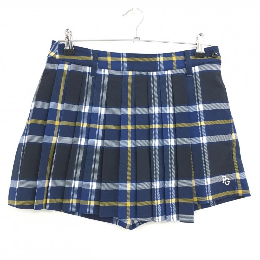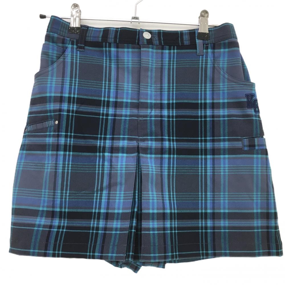 【超美品】アドミラル キュロットスカート ネイビー×グリーン チェック ストレッチ 裏地付き レディース L ゴルフウェア Admiral