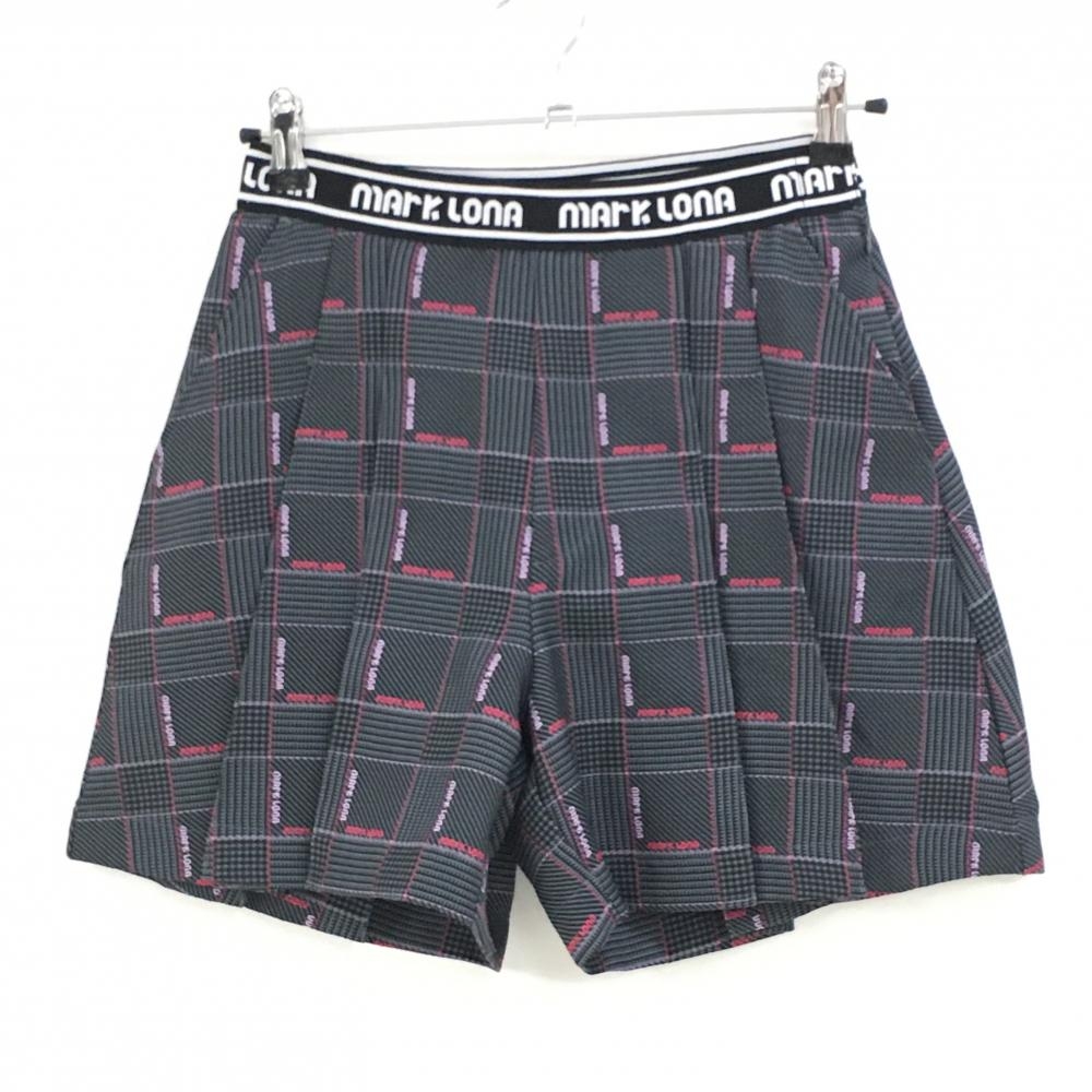 【美品】マークアンドロナ キュロットスカート 杢ダークグレー 微起毛素材 ベロアリボン レディース M ゴルフウェア MARK&LONA