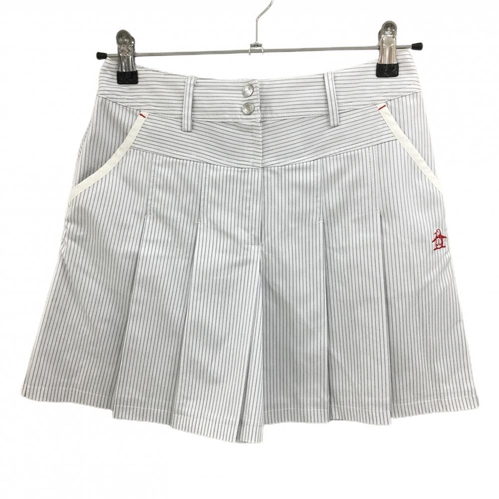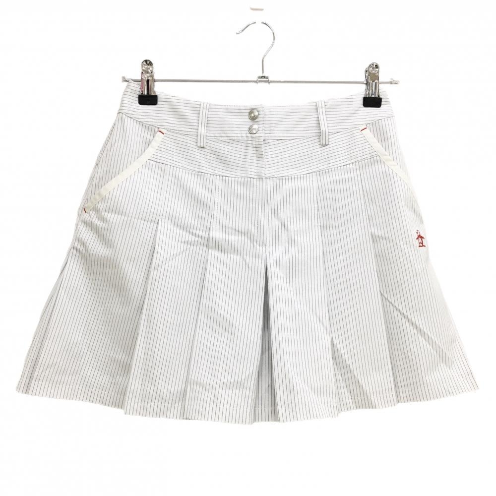 マンシングウェア キュロットスカート 白×グリーン ストライプ レディース 11 ゴルフウェア Munsingwear