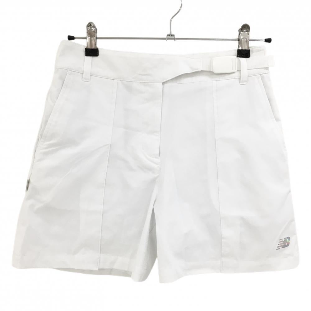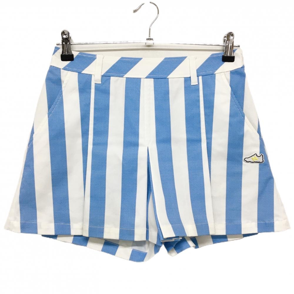 【美品】ニューバランス キュロットスカート 白×ライトブルー ストライプ シューズワッペン レディース 0(S) ゴルフウェア New Balance