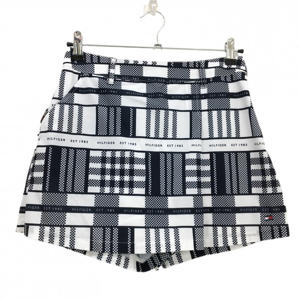【美品】ホンマ キュロットスカート 白×ライトグレー チェック柄地模様 後ろ刺しゅう レディース 13 ゴルフウェア HONMA