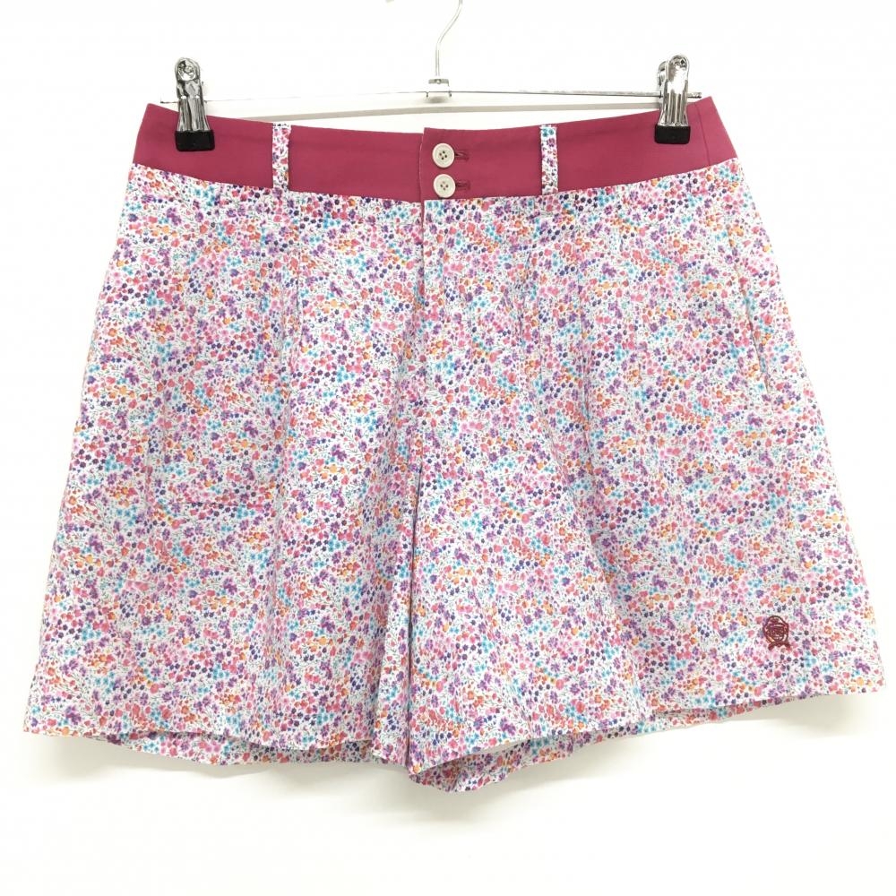 【超美品】シェルボ キュロットスカート ライトピンク×レッドピンク 花柄 ロゴ刺しゅう レディース USA-2/XS ゴルフウェア CHERVO