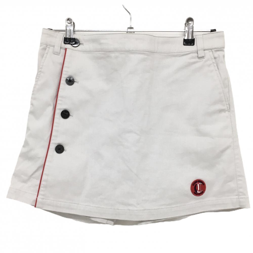 【美品】クランク キュロットスカート グレー レッドパイピングライン ロゴワッペン レディース O ゴルフウェア CLUNK