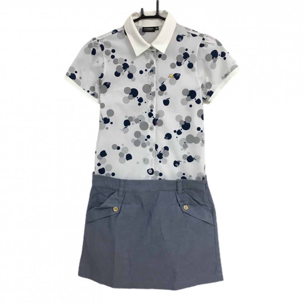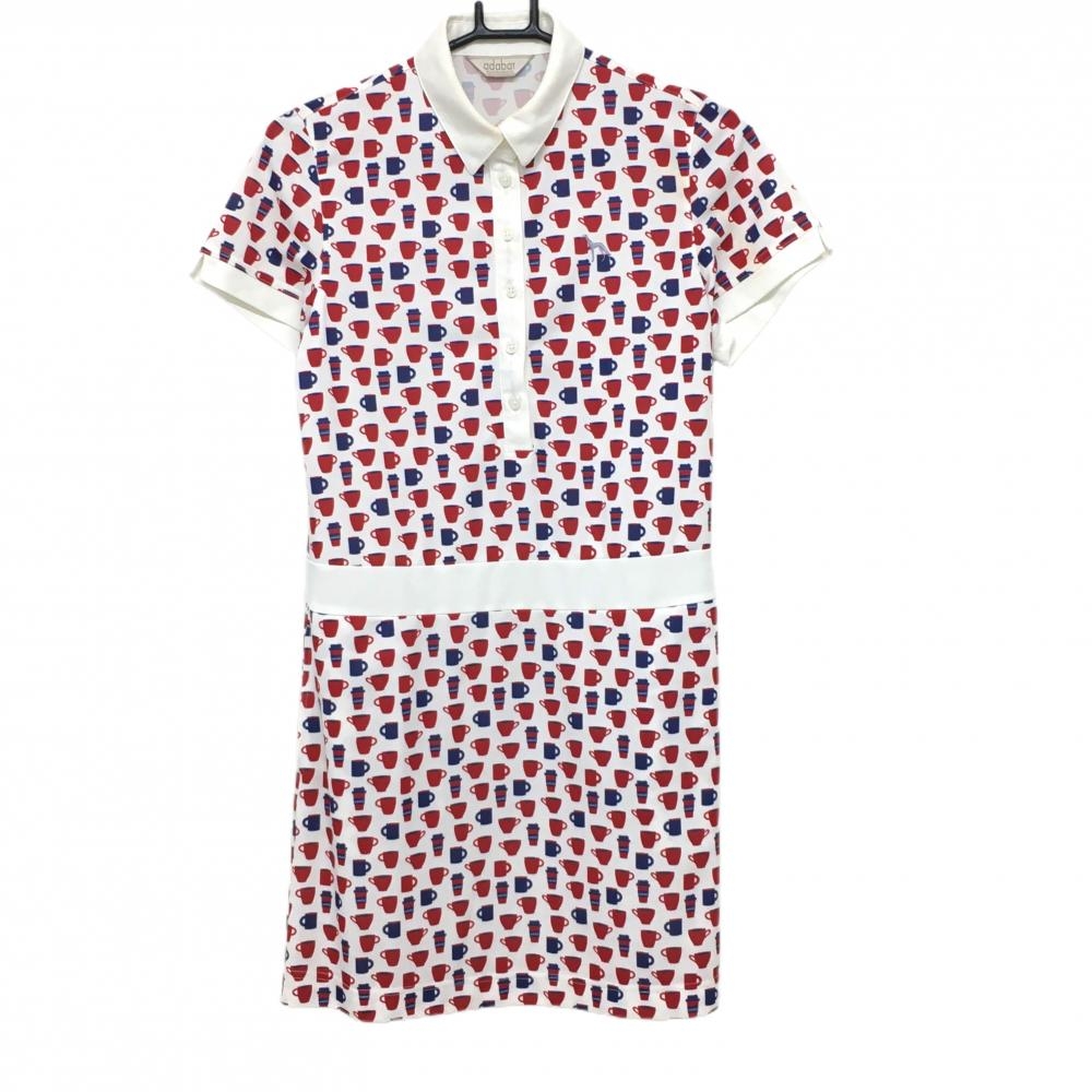【美品】アダバット 半袖ハイネックワンピース 白×ネイビー 総柄 ハーフジップ レディース 38(M) ゴルフウェア adabat