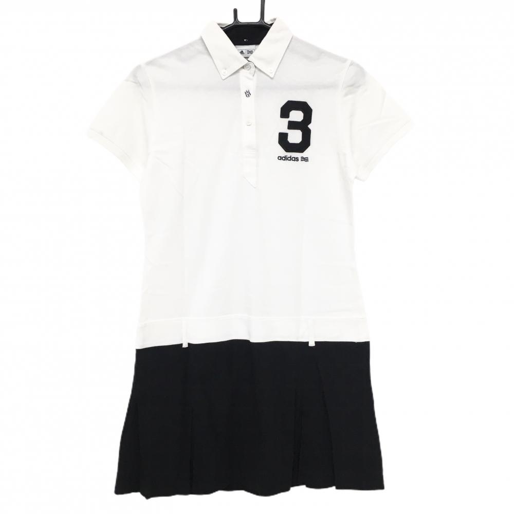 アディダス 半袖ポロワンピース ネイビー×白 後裾プリーツ 共布ベルト付 UPF50 レディース L ゴルフウェア adidas