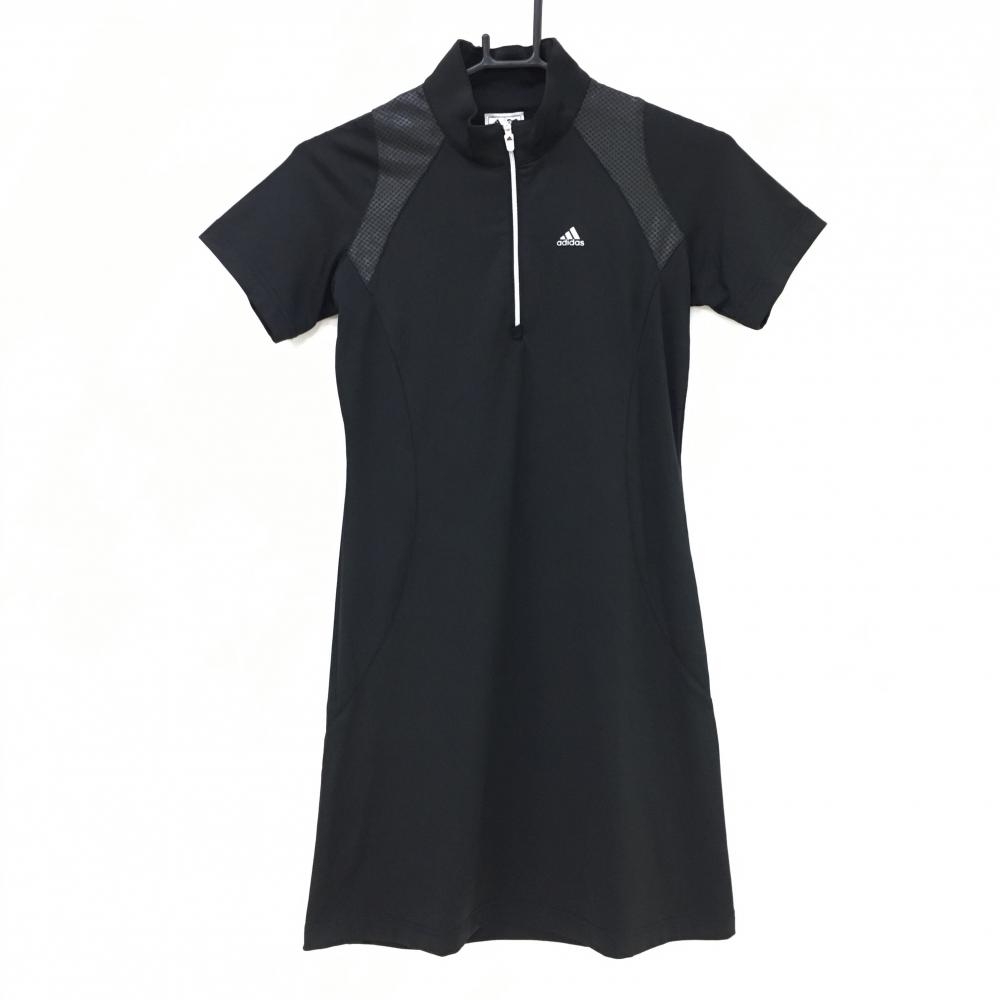 【超美品】アディダス 半袖ハイネックワンピース 黒 ネックロロゴ ハーフジップ インナーパンツなし レディース M ゴルフウェア adidas