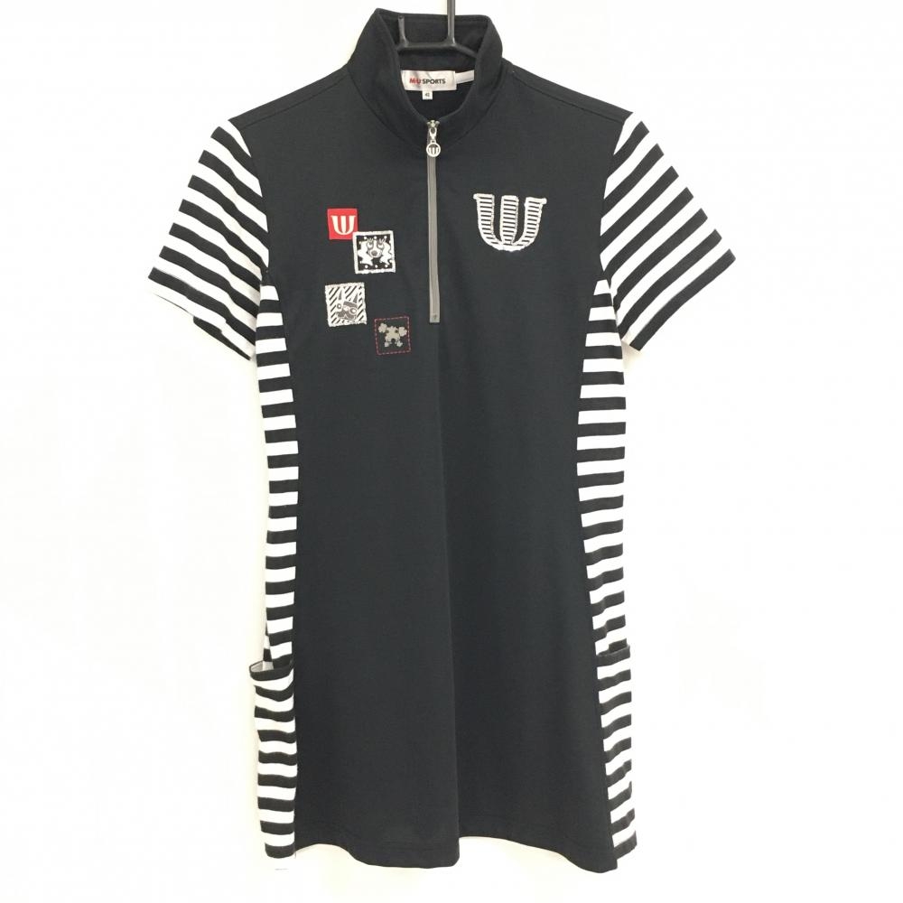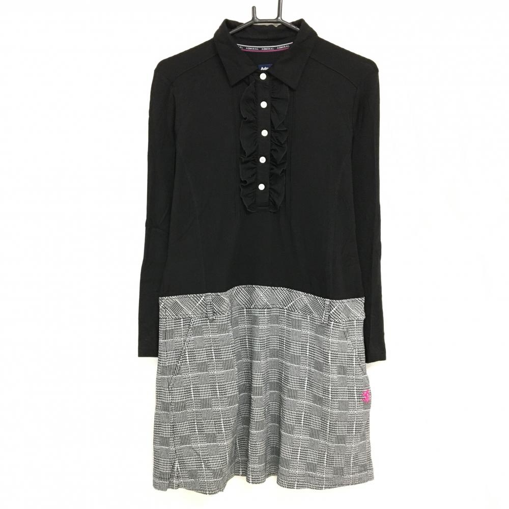 【超美品】アドミラル 半袖ハイネックワンピース 黒×白 縦ライン ウエストゴム英字ロゴ レディース M ゴルフウェア Admiral