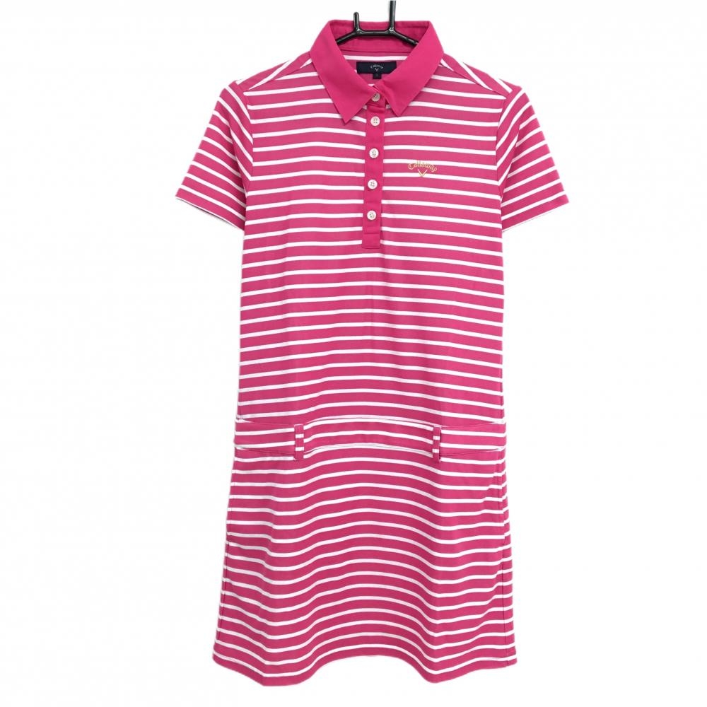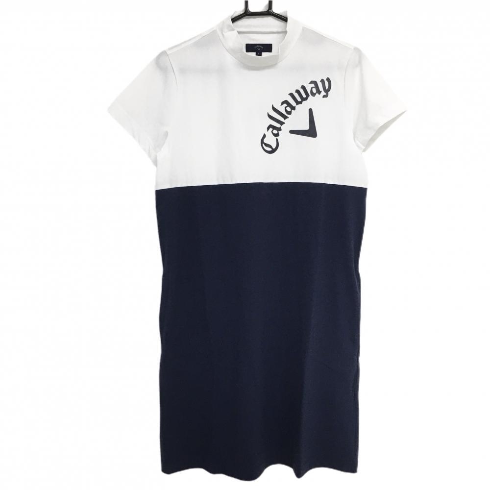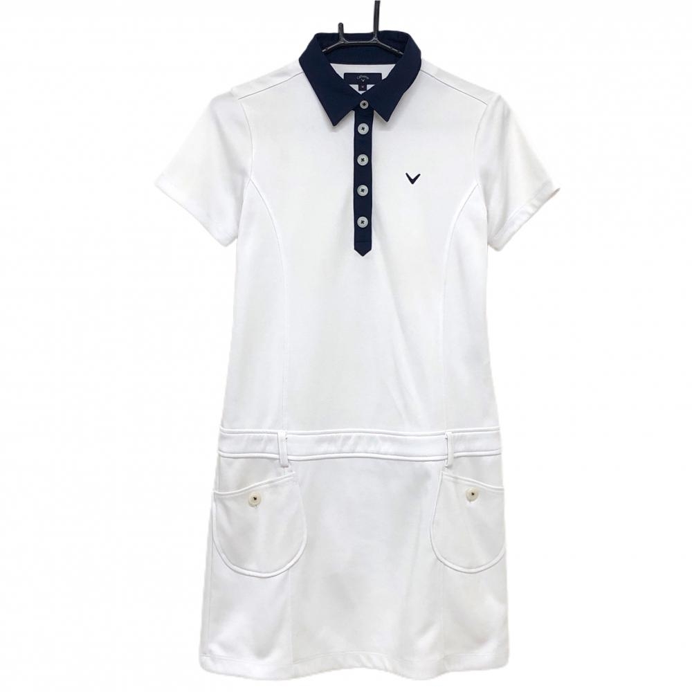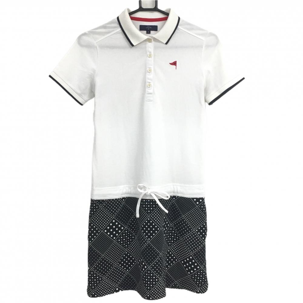 【超美品】キャロウェイ 半袖ポロワンピース ネイビー×白 スカート花柄 裏地付 レディース S ゴルフウェア Callaway