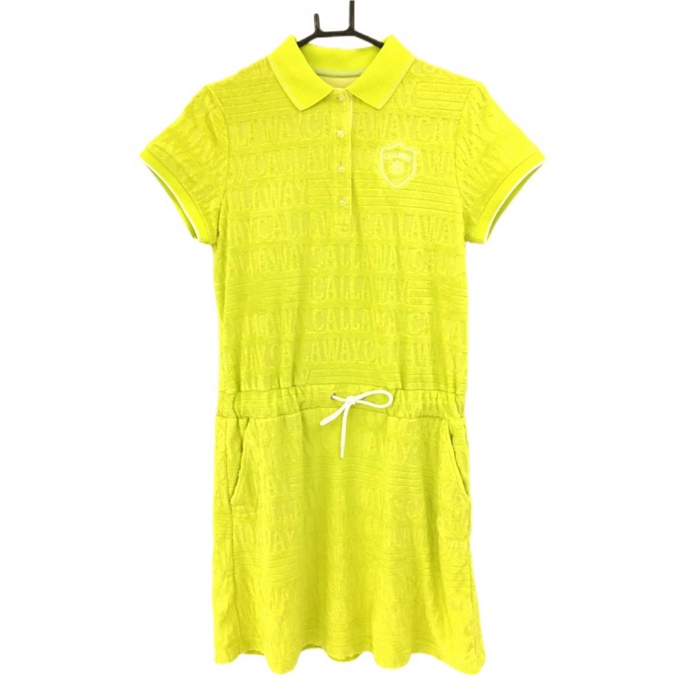 キャロウェイ 半袖ワンピース 白×マルチカラー 小鳥総柄 裏地付 レディース M ゴルフウェア Callaway