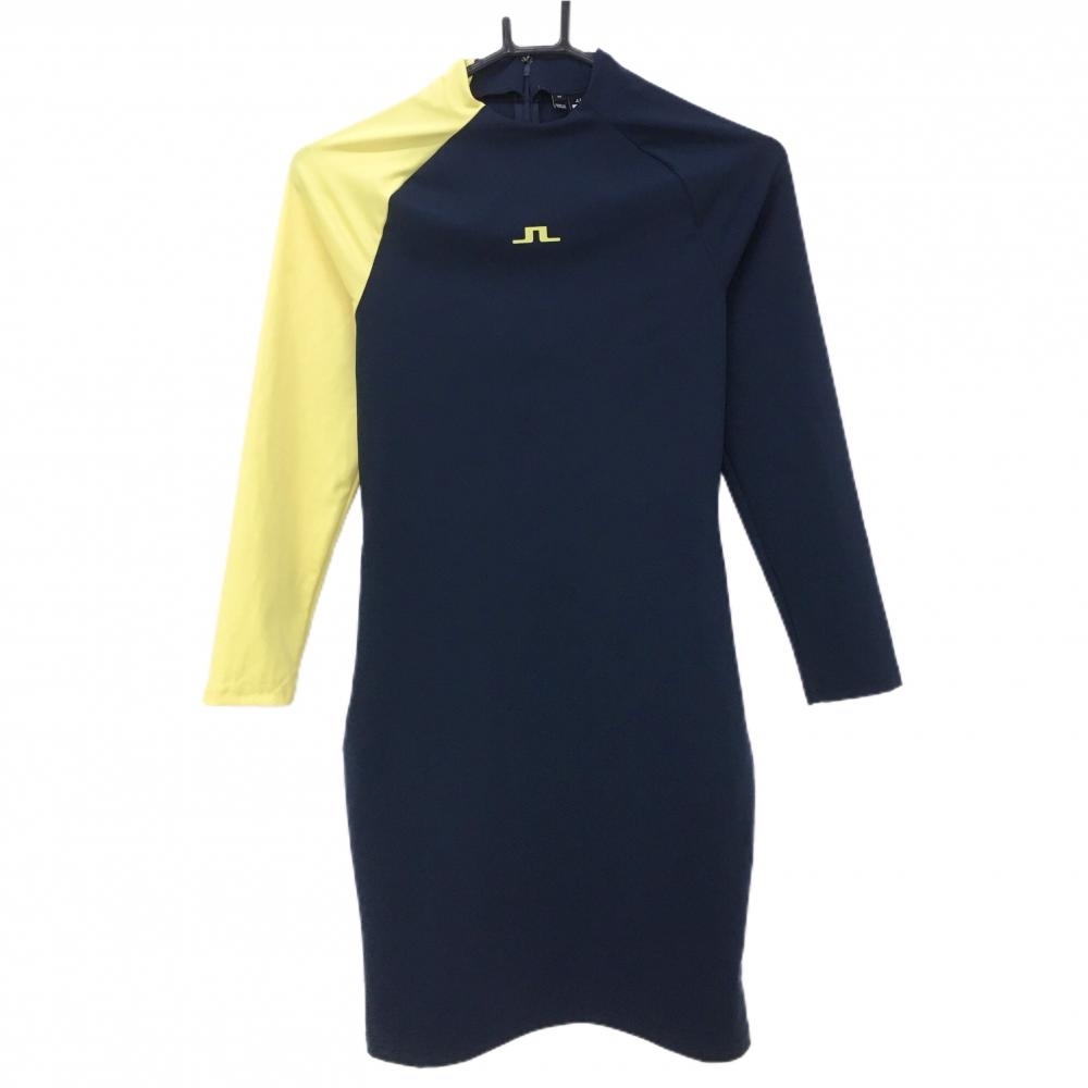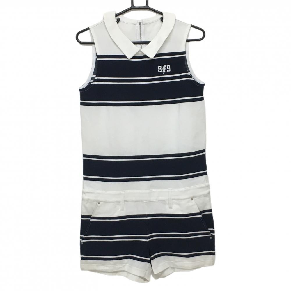 【超美品】パーリーゲイツ ハイネックワンピース ネイビー×白 上部ニット 裾ストライプ レディース 1(M) ゴルフウェア PEARLY GATES