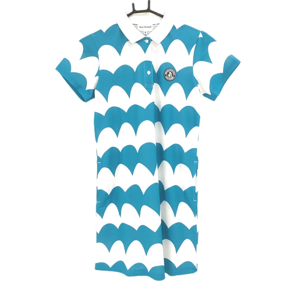 【超美品】ジャックバニー 半袖ハイネックワンピース ブルー×黒×白 レディース 2(L) ゴルフウェア 2023年モデル Jack Bunny