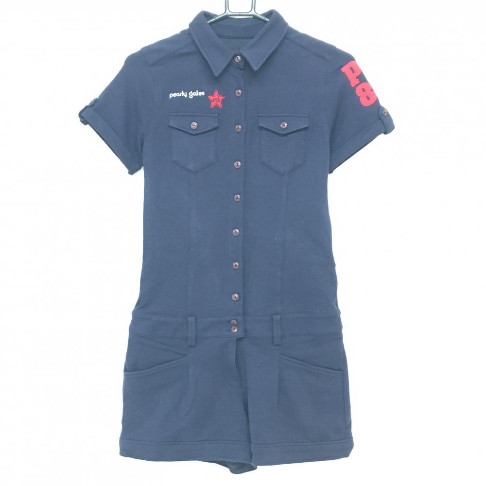 パーリーゲイツ 半袖ポロワンピース ネイビー×白 感電ニコちゃん スマイル レディース 1(M) ゴルフウェア PEARLY GATES