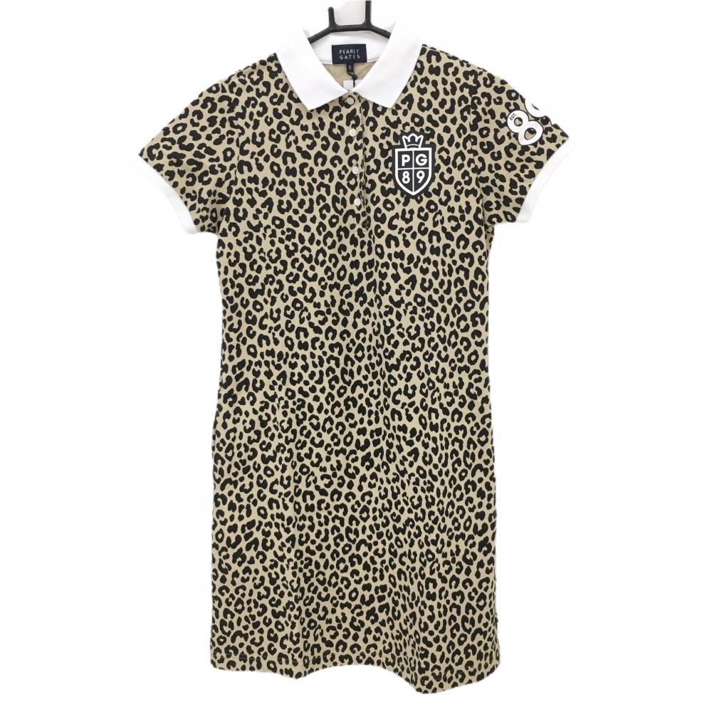 【新品】CPG 半袖ニットワンピース ベージュ×黒 肩ボタン 立体ロゴ レディース 2(M) ゴルフウェア 2024年モデル CPG