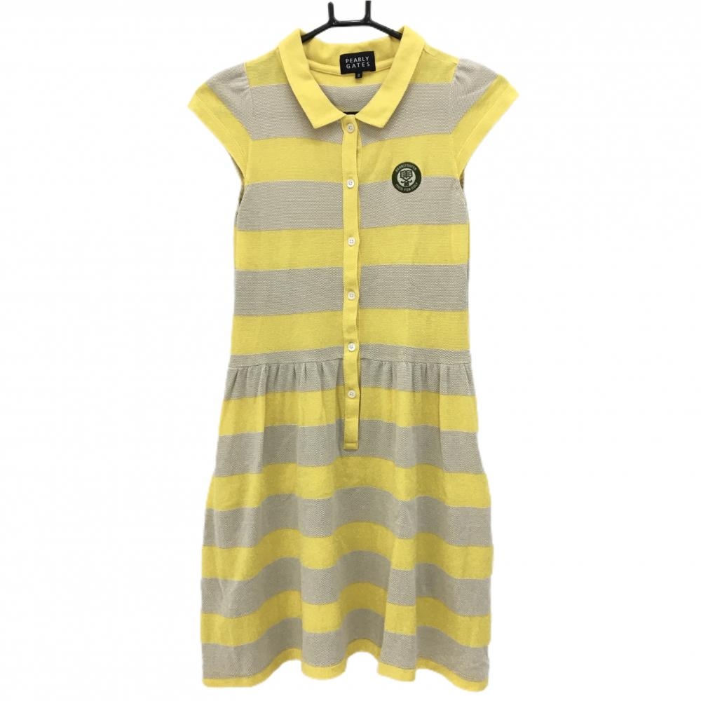 PGGパーリーゲイツ 半袖ハイネックワンピース ネイビー×白 ボーダー ハーフジップ レディース 1(M) ゴルフウェア PEARLY GATES