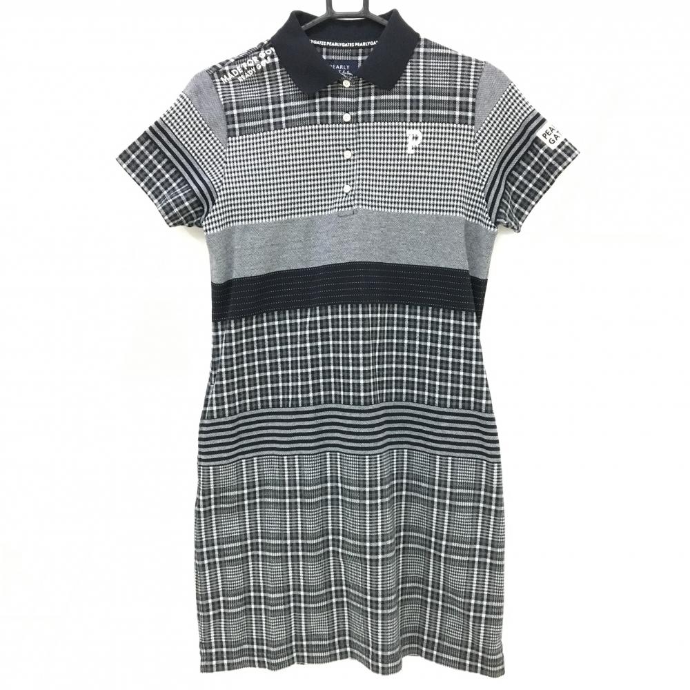 【超美品】パーリーゲイツ 半袖ポロワンピース ネイビー×黒 総柄織生地 胸ロゴ レディース 1(M) ゴルフウェア 2023年モデル PEARLY GATES