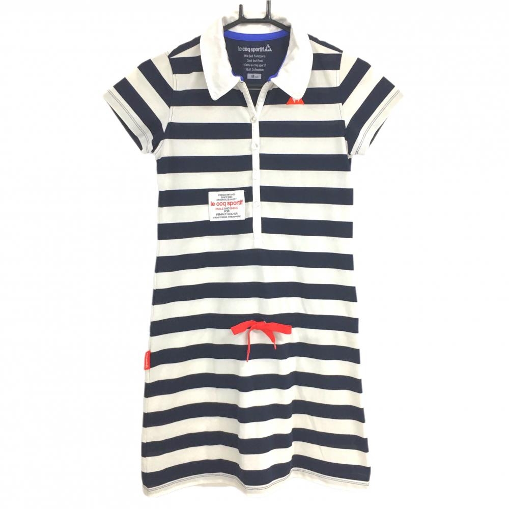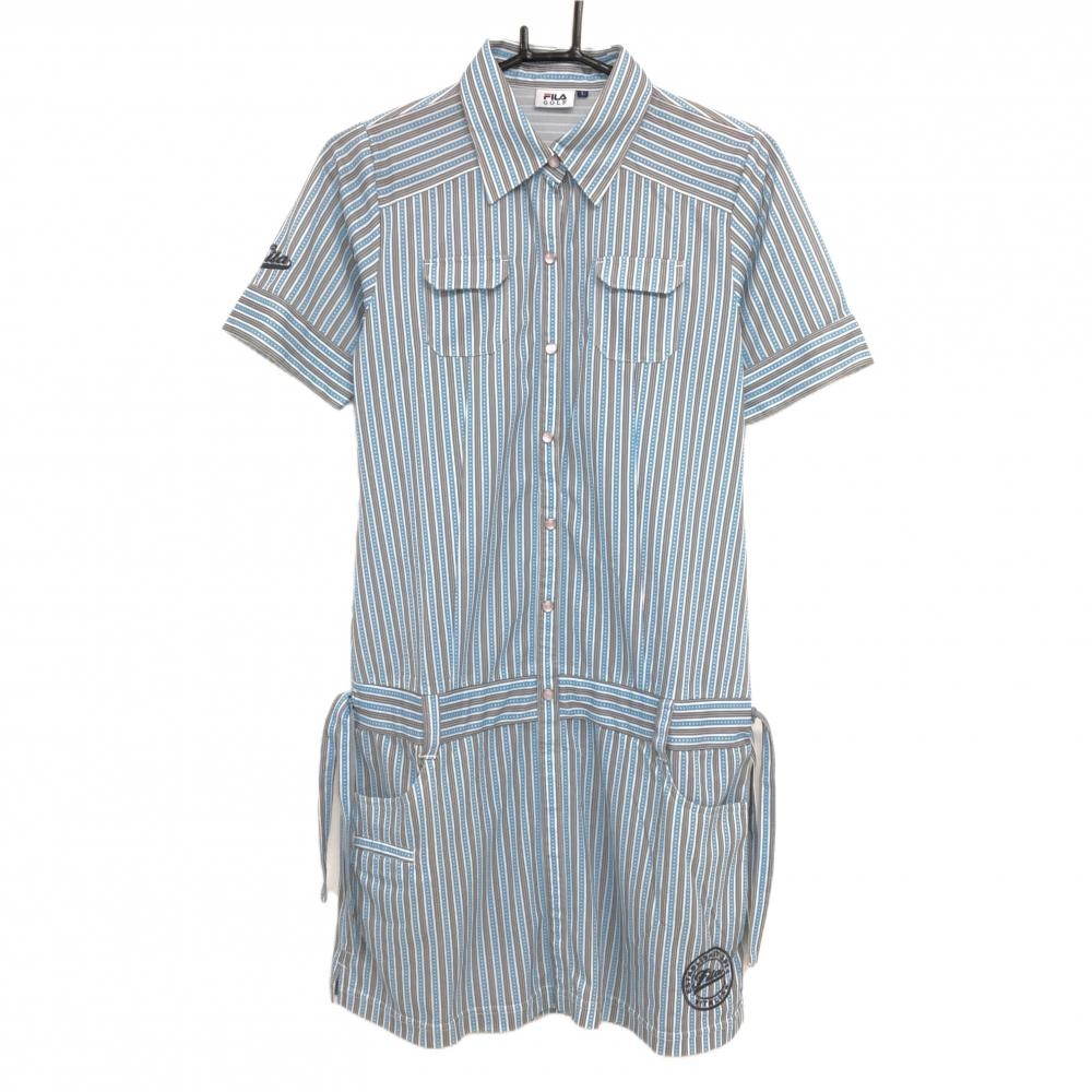 フィラゴルフ 半袖ポロワンピース ブルー×白 ボーダー ハーフジップ レディース M ゴルフウェア FILA GOLF