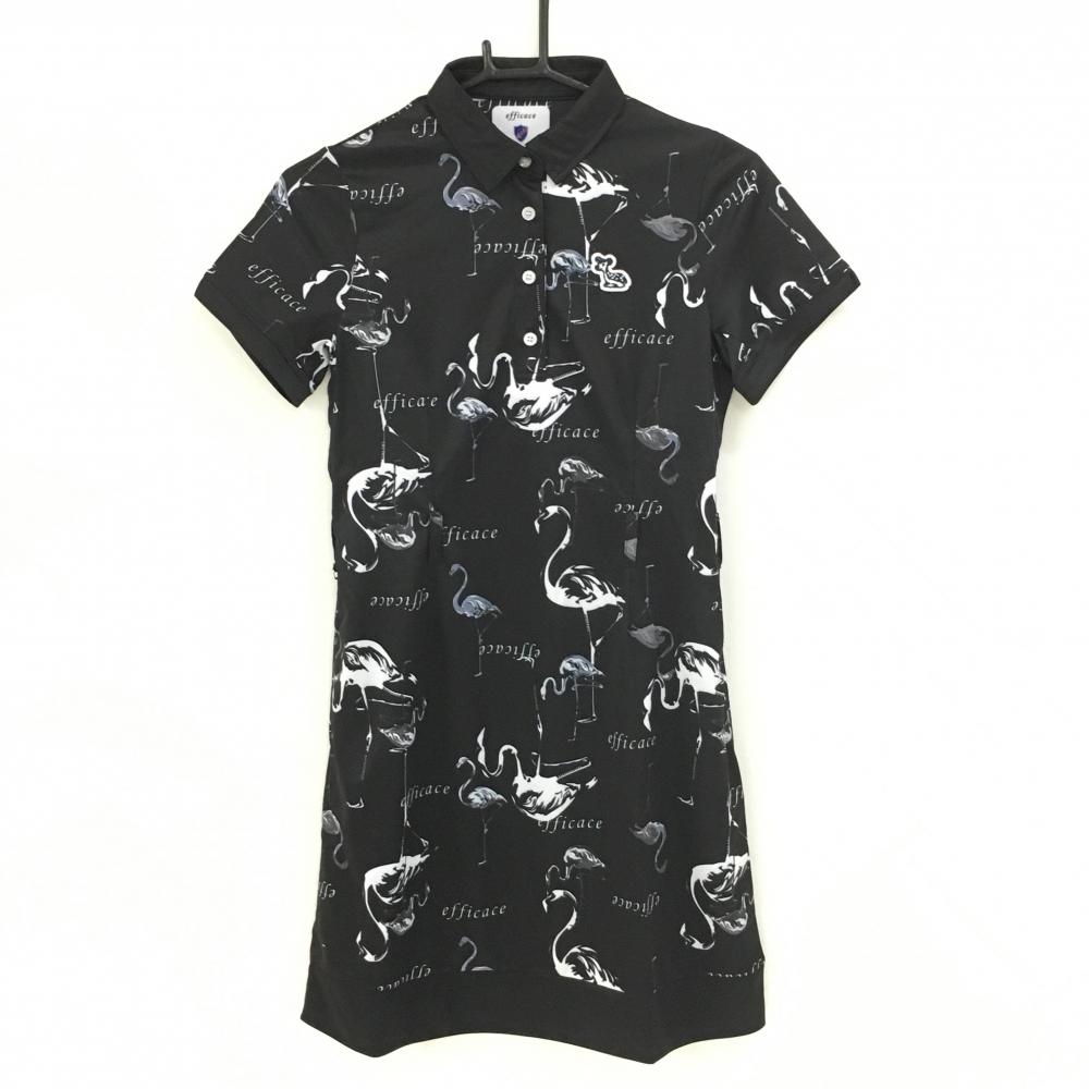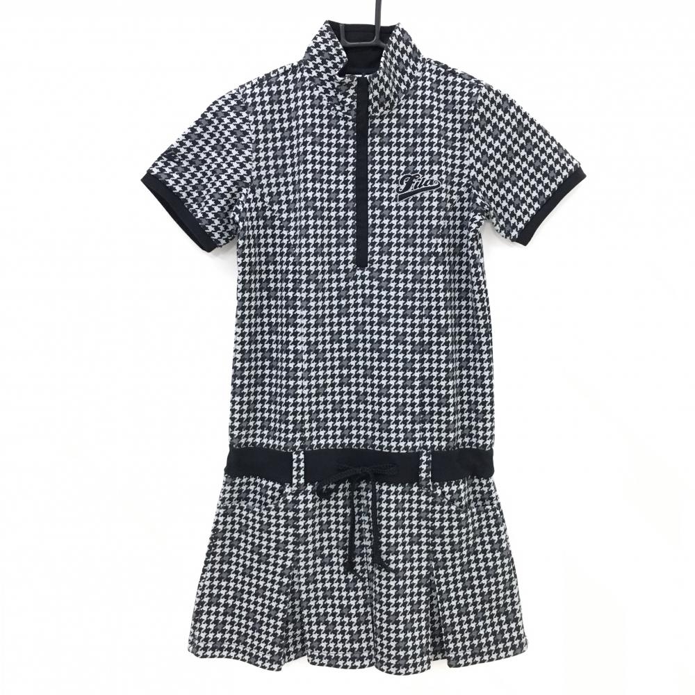 フィラゴルフ 半袖ポロワンピース 黒 袖ライン スカート部裏地付 レディース S ゴルフウェア FILA GOLF