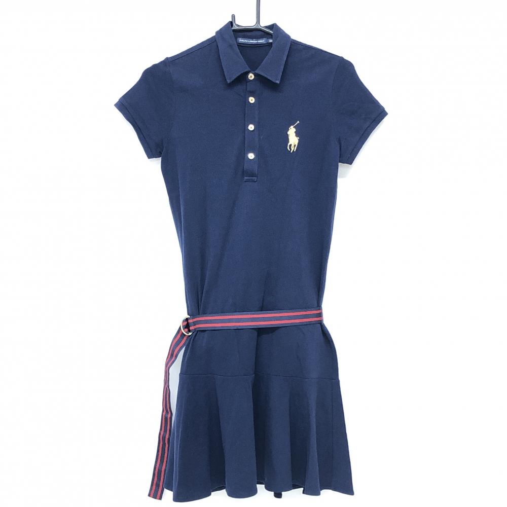 ラルフローレン 半袖ワンピース ネイビー×グリーン ゴルフクラブ レディース S 160/84A ゴルフウェア Ralph Lauren