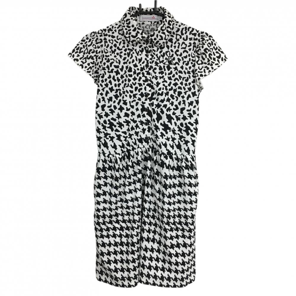 【超美品】ムータマリン ニットワンピース 白×黒 ロゴ総柄 ウール混 レディース 1(S) ゴルフウェア muta