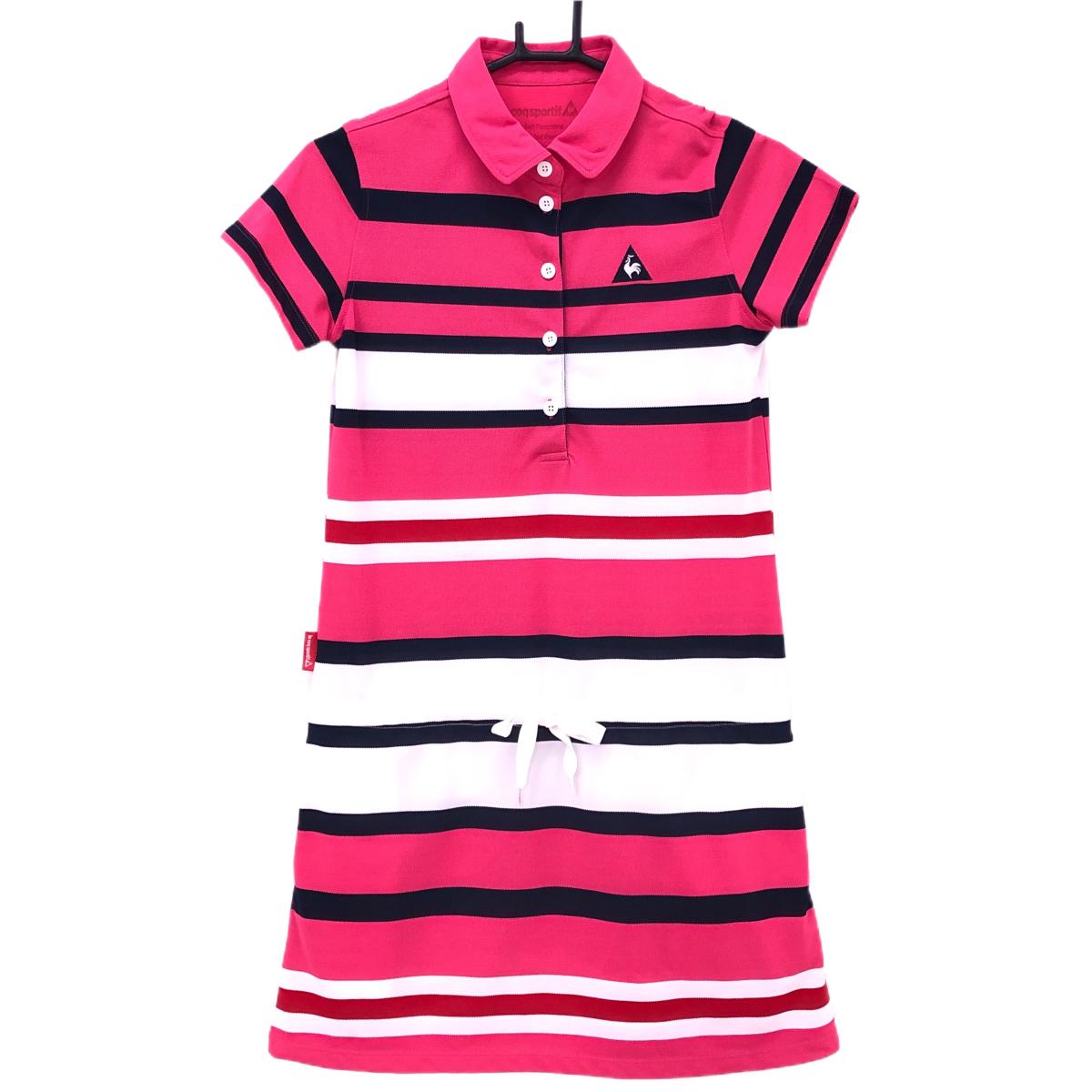 マンシングウェア 半袖ポロワンピース ピンクレッド×白 ストライプ 胸元ロゴ レディース M ゴルフウェア Munsingwear
