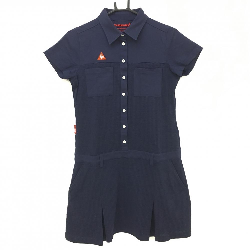 ルコックゴルフ 2WAYレインワンピース ネイビー×白 格子柄 メッシュ裏地 袖着脱可 収納袋付 レディース L ゴルフウェア le coq sportif