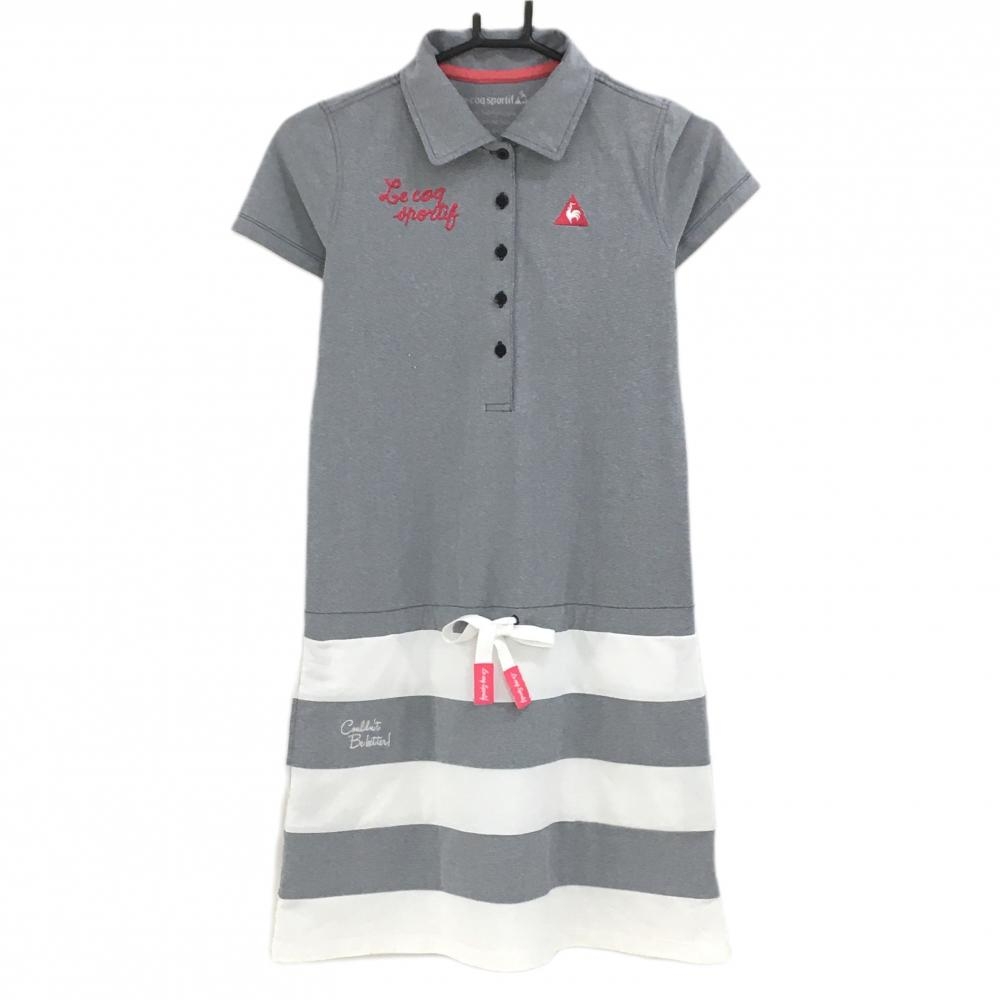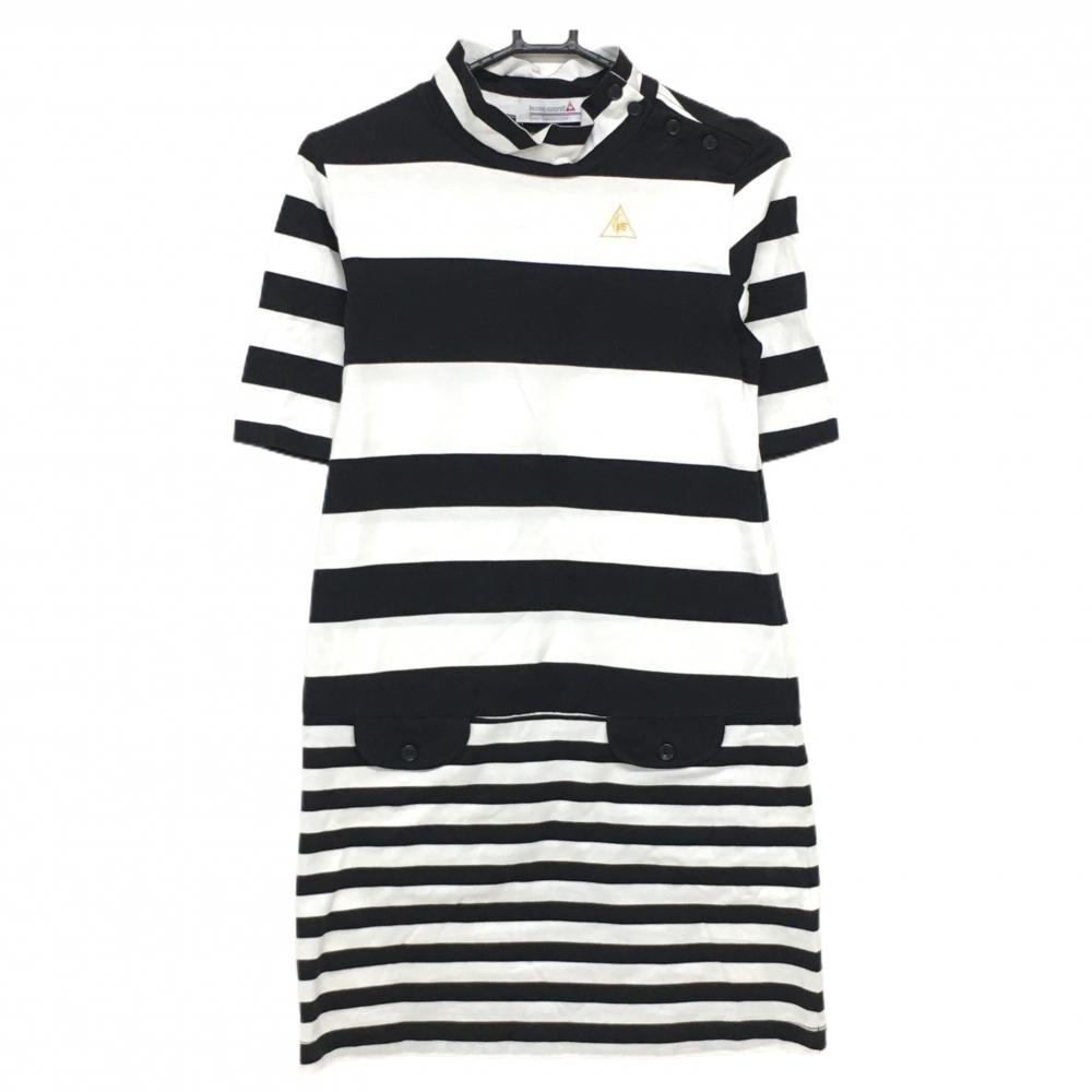 【新品】ルコックゴルフ 半袖ワンピース 黒×ライトグレー ハーフジップ ストレッチ レディース M ゴルフウェア le coq sportif