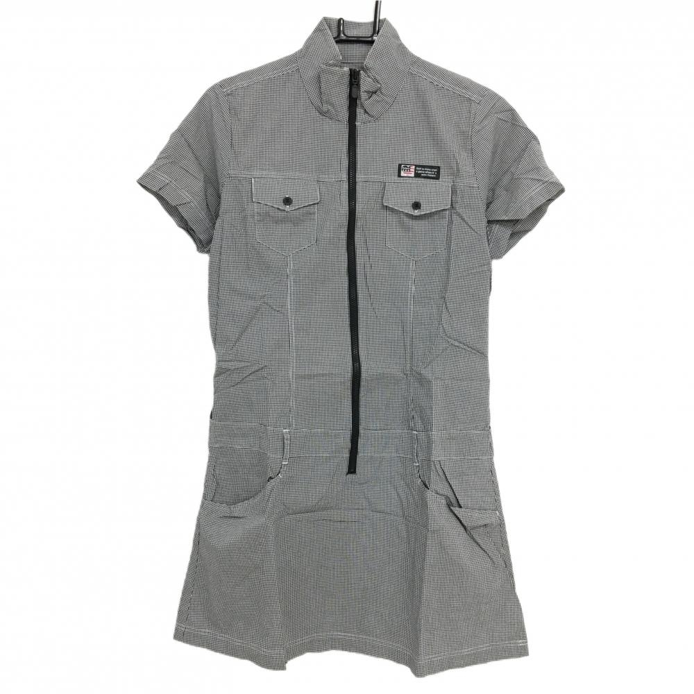 オークリー 半袖ワンピース 白×グレー スカートチェック スキッパー レディース M ゴルフウェア Oakley