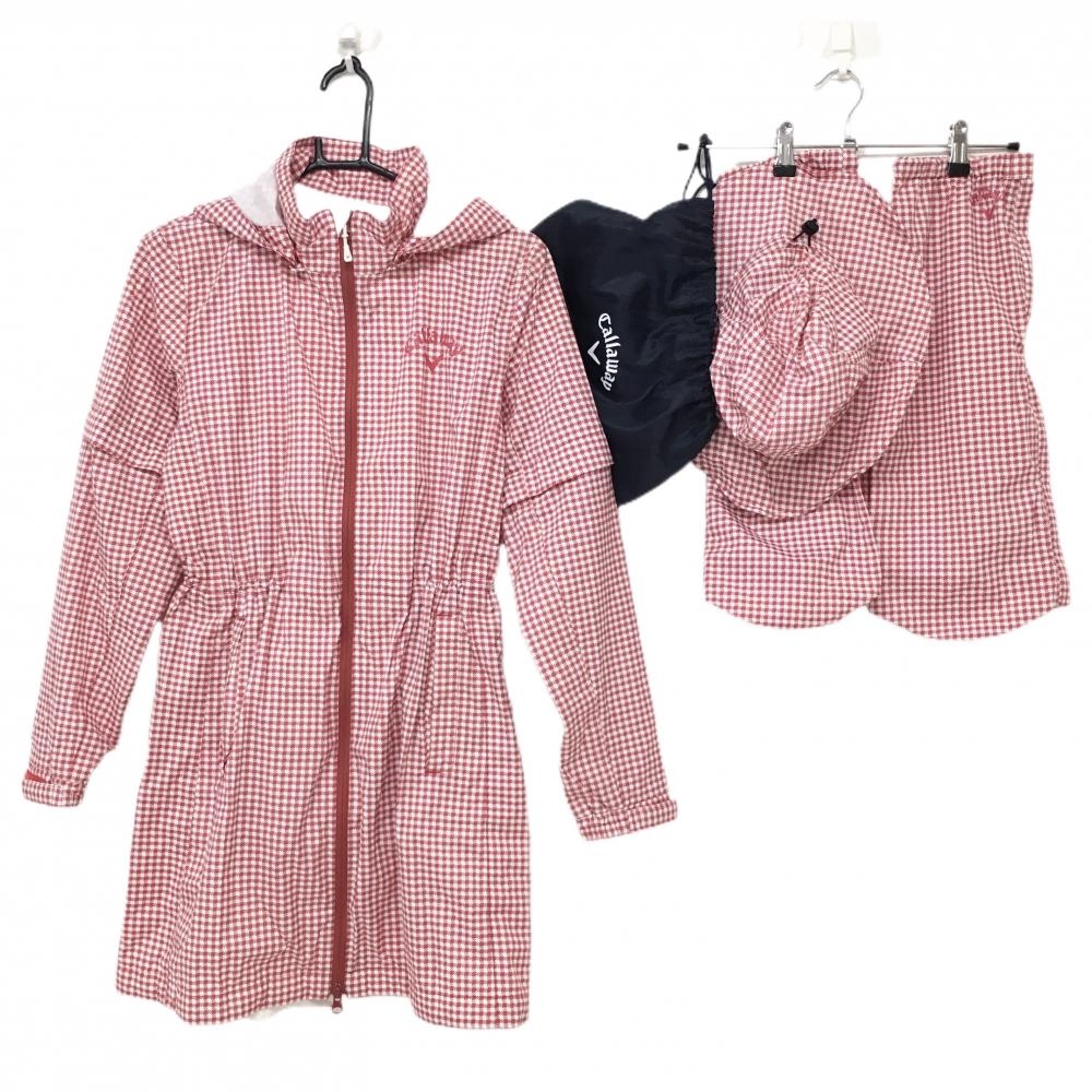 キャロウェイ レインウェア(2WAYジャケット×スカート) 白×ネイビー スカートチェック 裏地メッシュ レディース S ゴルフウェア Callaway