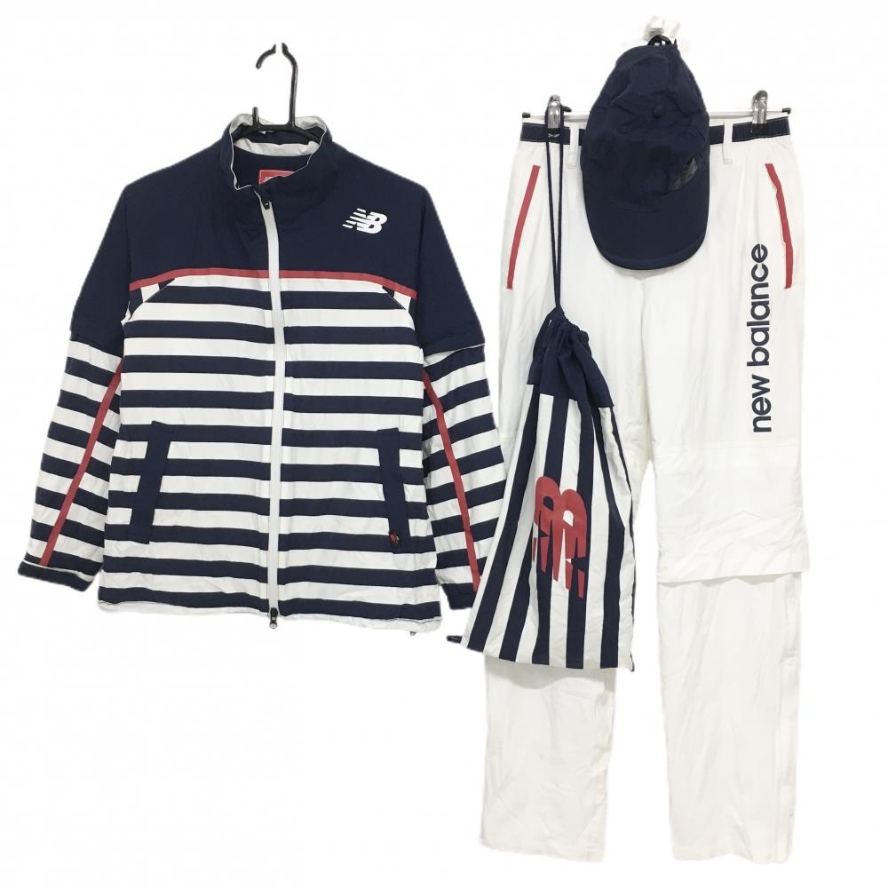 【美品】ワンサイダー レインウェア(2WAYジャケット×パンツ) ネイビー×白 裏メッシュ 収納袋付 袖着脱可 メンズ L ゴルフウェア ONESIDER