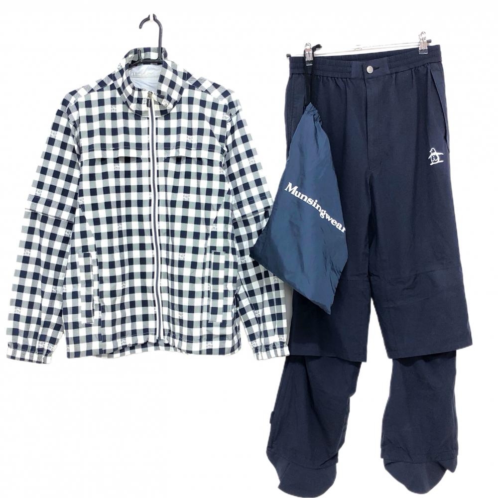 キャロウェイ レインウェア(2WAYジャケット×パンツ) ネイビー×グリーン チェック 袖着脱可 収納袋 メンズ L ゴルフウェア Callaway