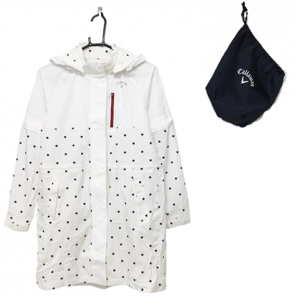 キャロウェイ レインウェア(4WAYブルゾン×パンツ) 白×ダークネイビー 袖フード着脱可 裏地メッシュ レディース L ゴルフウェア Callaway