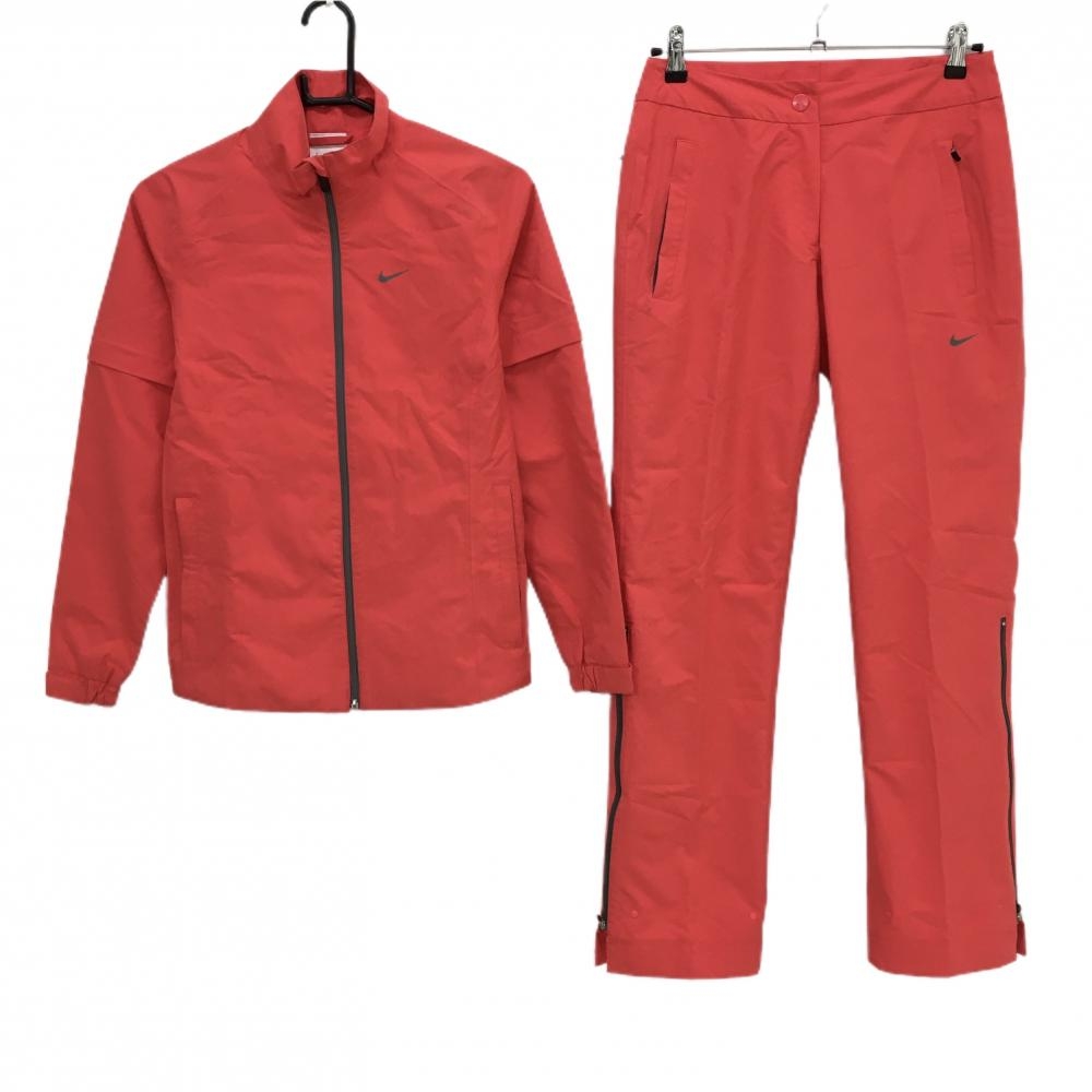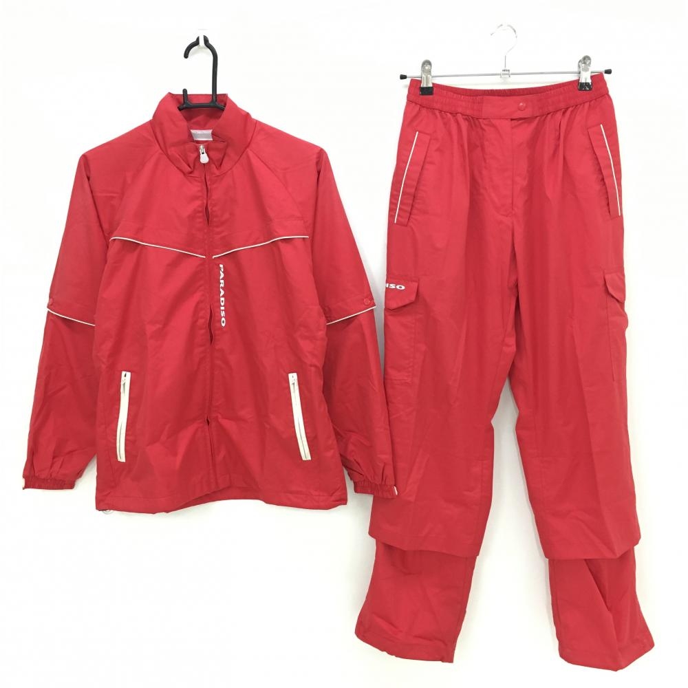 【美品】ミズノゴルフ レインウェア(2WAYジャケット×パンツ) レッド 収納袋付 袖着脱可 レディース M ゴルフウェア MIZUNO