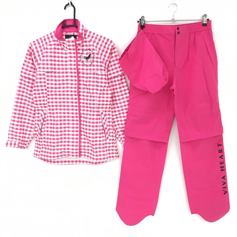【超美品】アディダス レインウェア(2WAYジャケット×パンツ) 白×黒 ギンガムチェック パンツピンク レディース L/G ゴルフウェア adidas