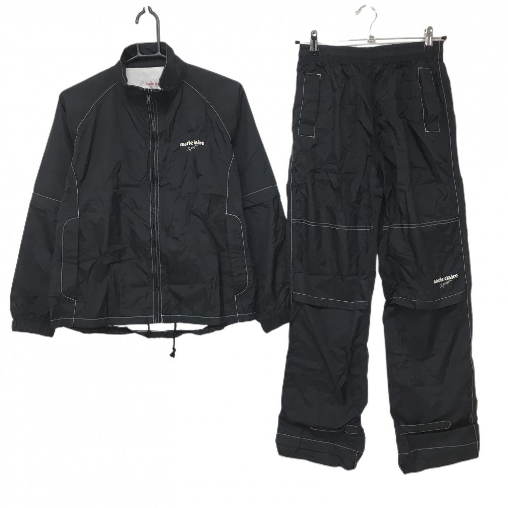 【美品】ホンマ レインウェア(2WAYジャケット×パンツ) 黒 ロゴシルバー 袖着脱可 メンズ M ゴルフウェア HONMA