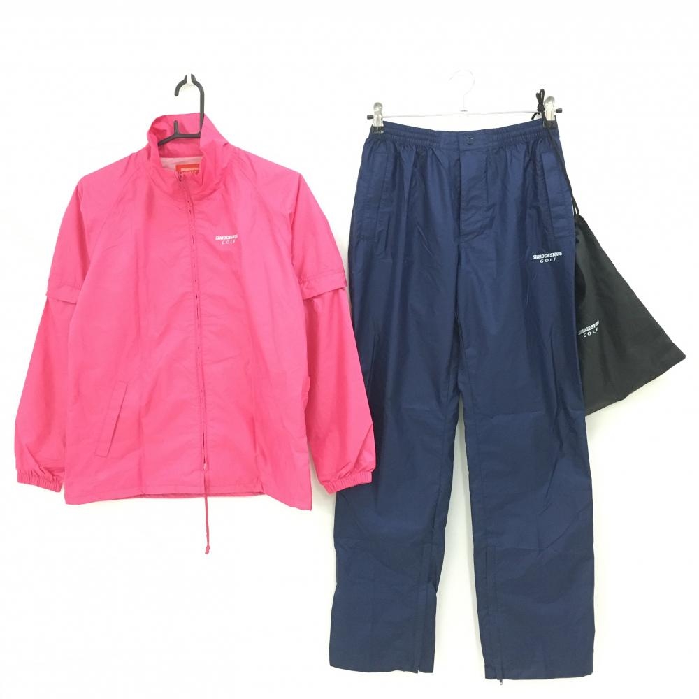 【美品】ブリヂストン レインウェア(2WAYジャケット×パンツ) レッド×黒 ロゴプリント 裏地メッシュ メンズ 3L ゴルフウェア Bridgestone