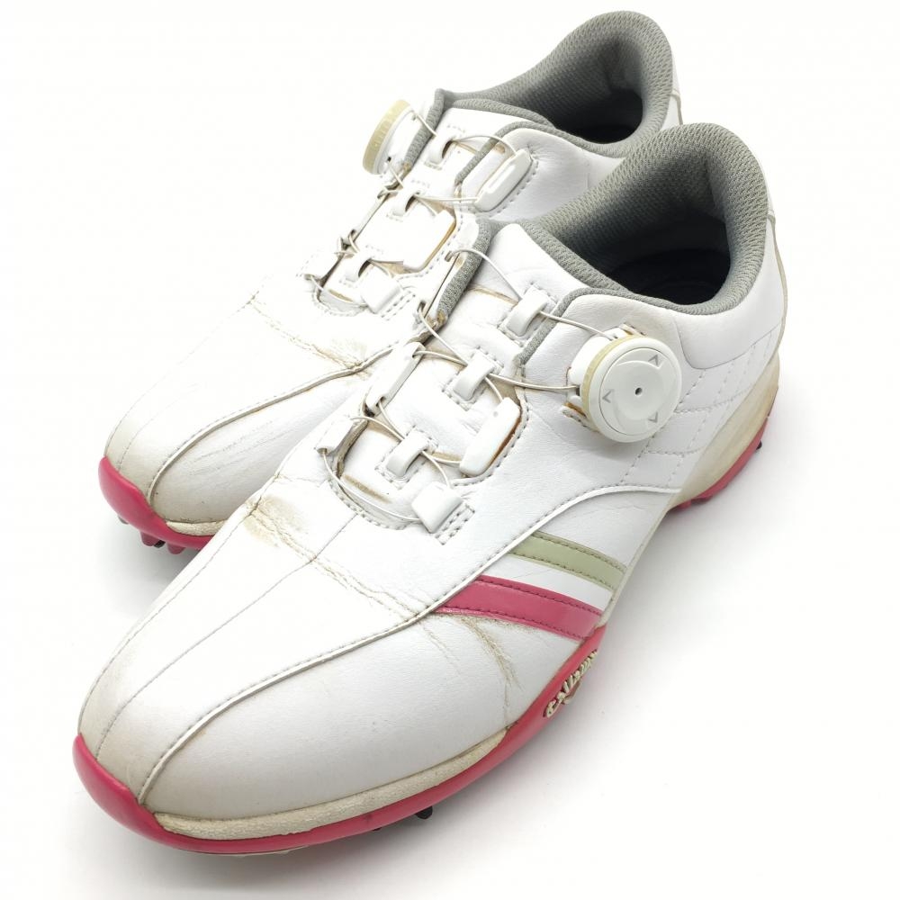キャロウェイ ゴルフシューズ 白×ピンク 116102 ダイヤル式 レディース 24.0 ゴルフウェア Callaway