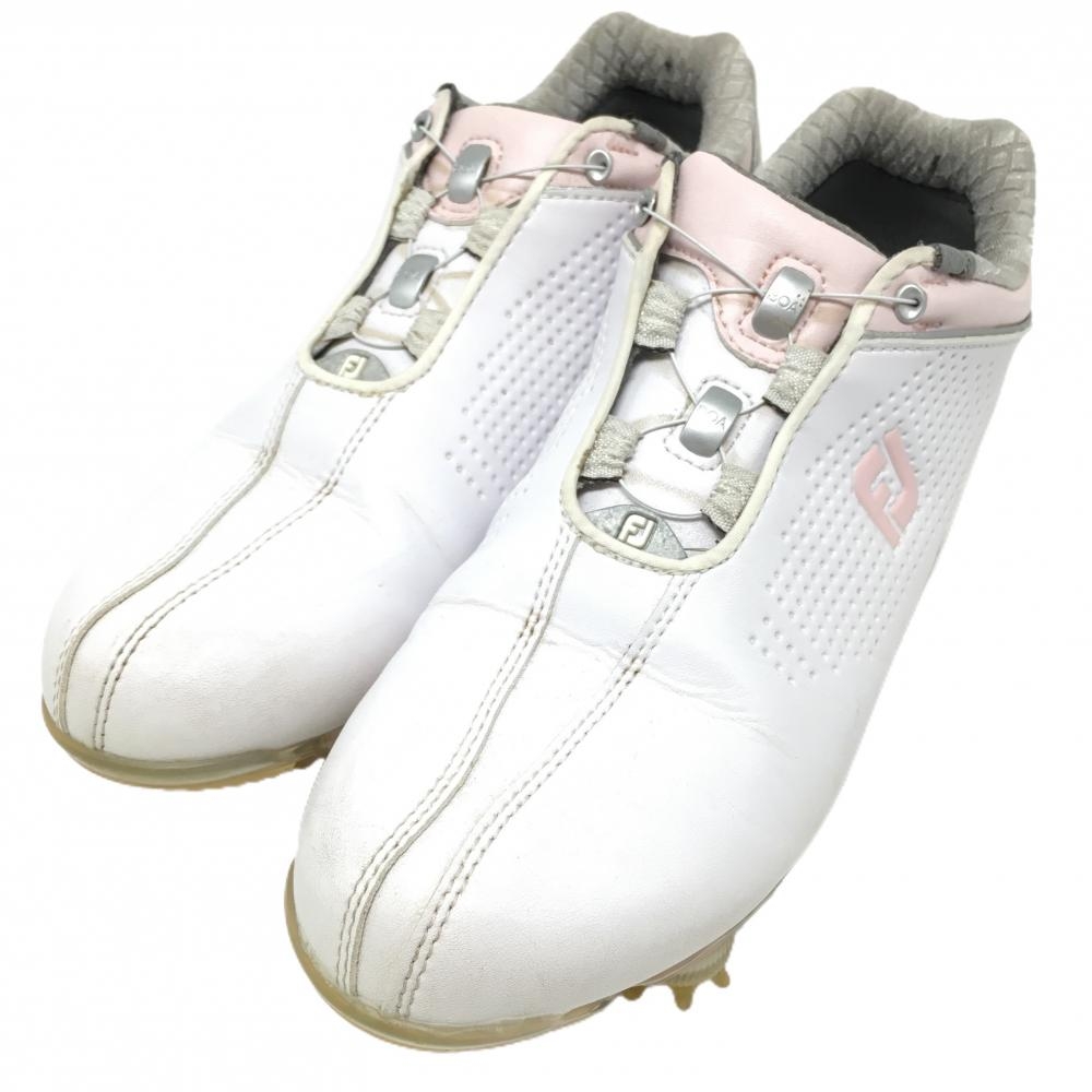 【美品】フットジョイ ゴルフシューズ 白×ピンク系 93833J リールフィット レディース 23.0 ゴルフウェア FootJoy