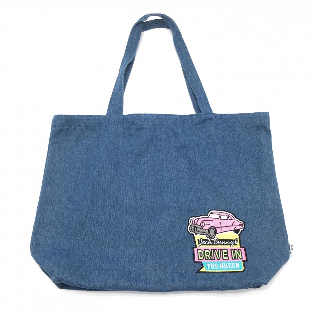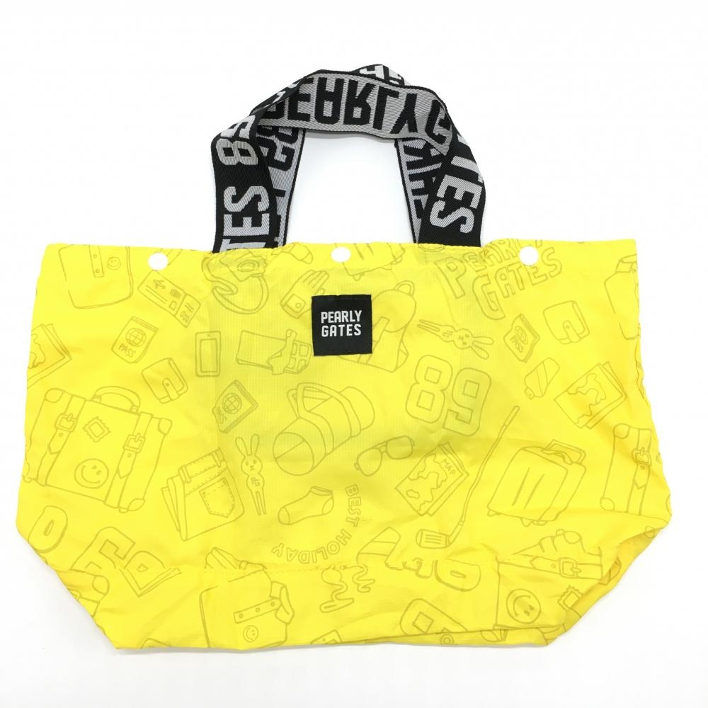【美品】パーリーゲイツ 2WAYビッグトートバッグ 黒×イエロー ニコちゃん総柄 デニム スマイルゴルフ PEARLY GATES