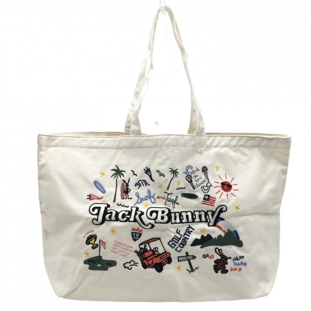 【超美品】ジャックバニー カートバッグ 白×グリーン ロゴ総柄 内ポケット ゴルフ Jack Bunny