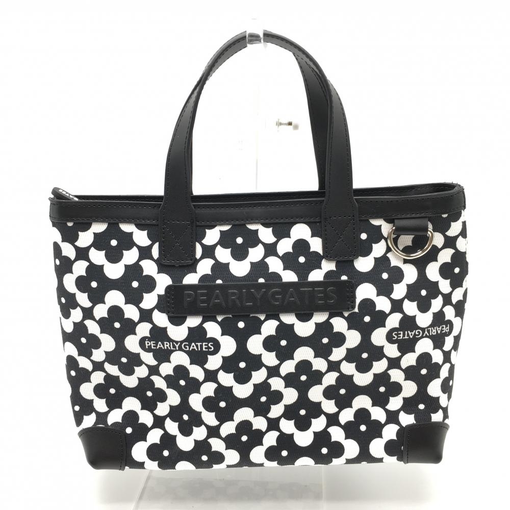 【美品】パーリーゲイツ カートバッグ 黒×白 花柄ゴルフ PEARLY GATES