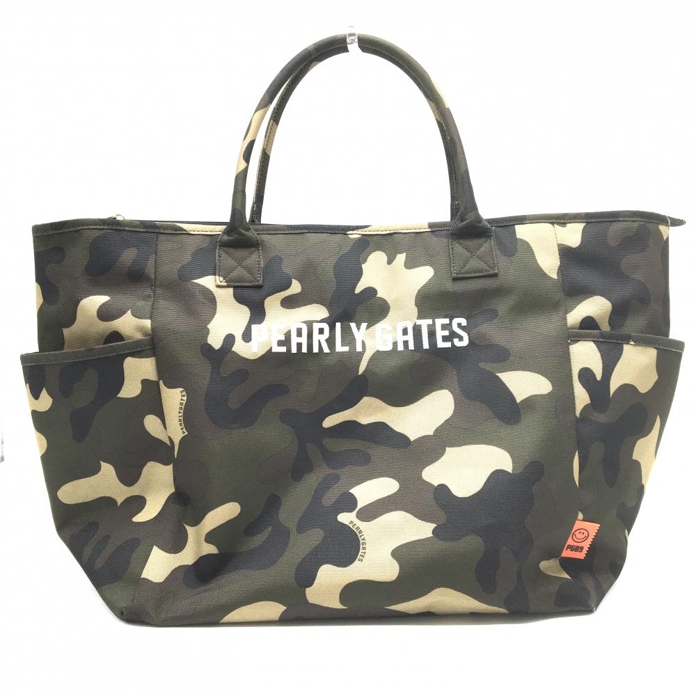 パーリーゲイツ ビッグトートバッグ カーキ×黒 カモフラ 迷彩 ニコちゃん スマイル ロッカーバッグ ゴルフ PEARLY GATES