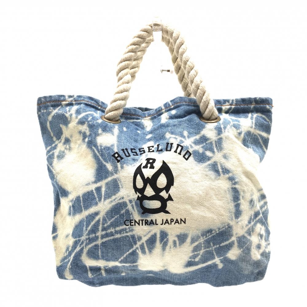 【美品】ラッセルノ カートバッグ ライトベージュ×ネイビー パンチング素材 ポーチ取外し可 ゴルフ RUSSELUNO