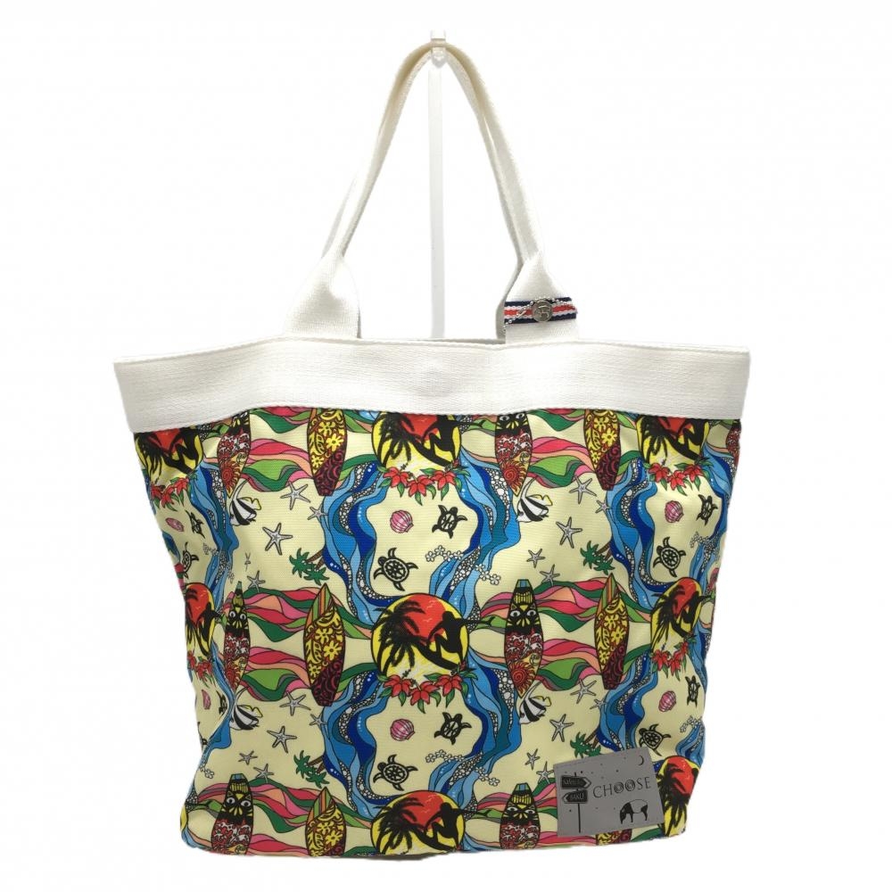 パーリーゲイツ ビッグトートバッグ ライトブルー系×アイボリー 総柄 宇宙人 内ポケット付ゴルフ PEARLY GATES