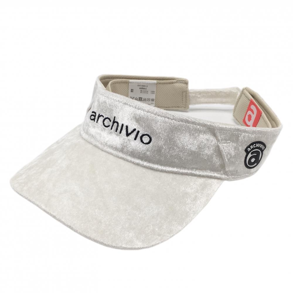 アルチビオ サンバイザー シルバー×黒 ラインストーンロゴ つば微起毛 レディース ゴルフウェア archivio