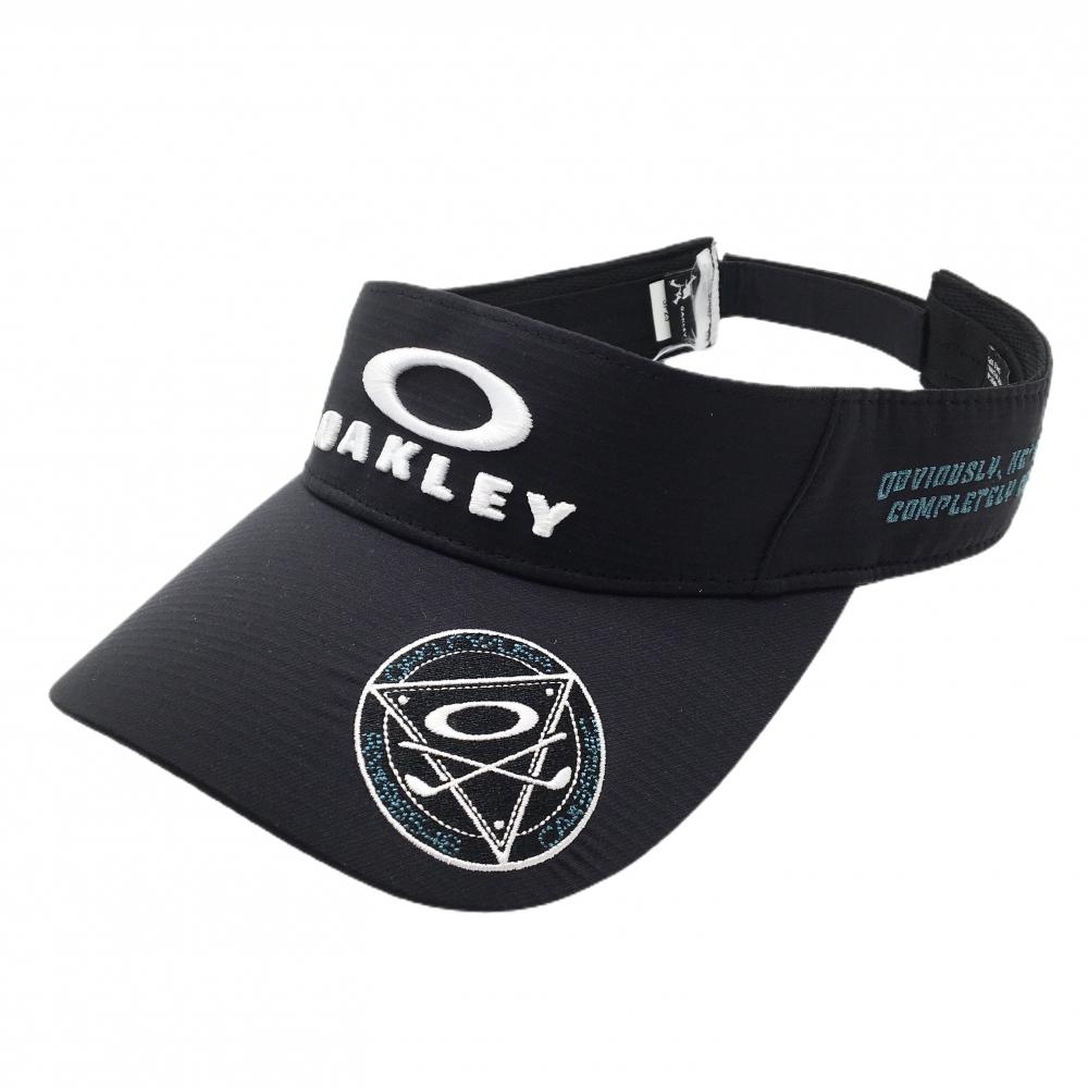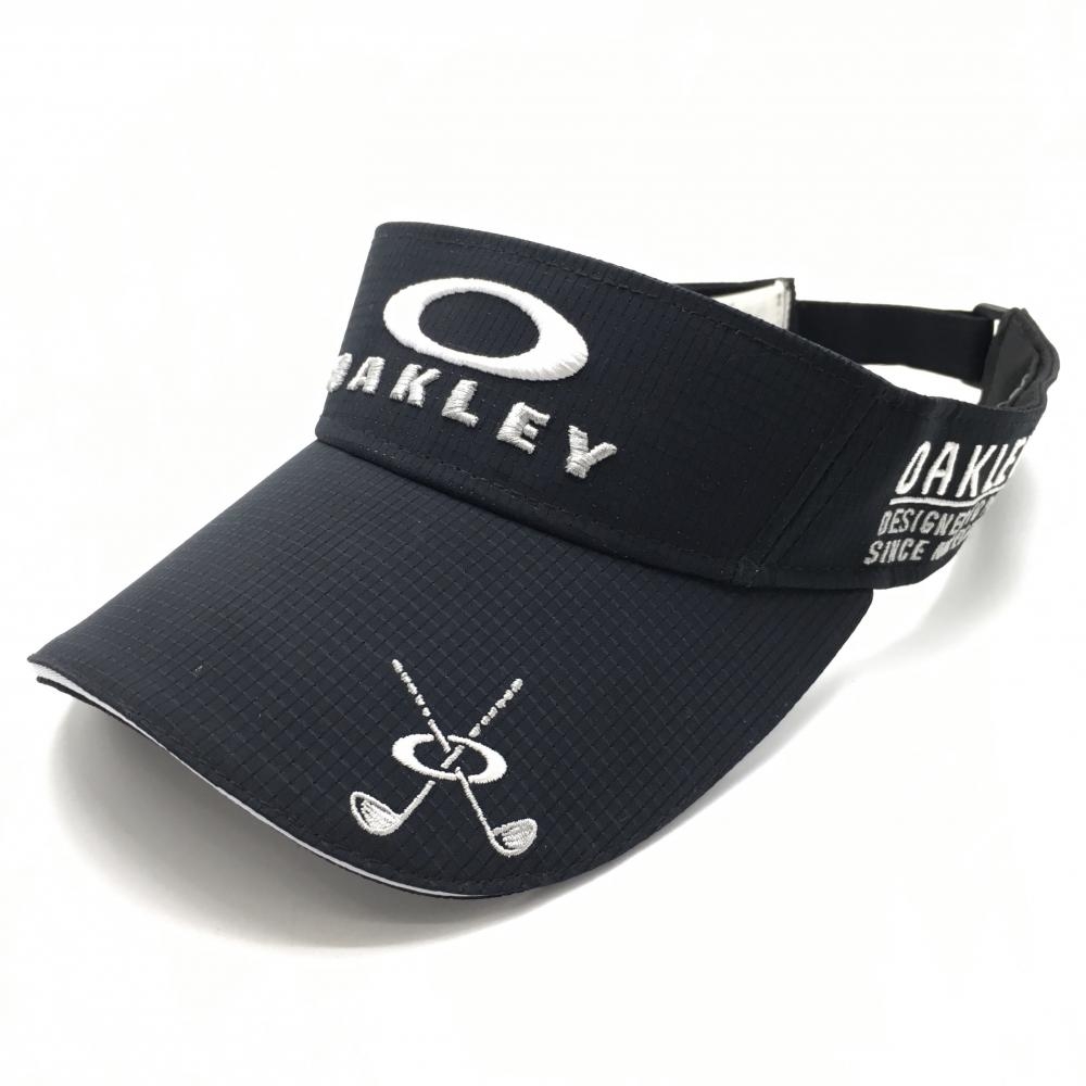 【超美品】オークリー サンバイザー 黒 ロゴ刺しゅう ゴルフウェア Oakley